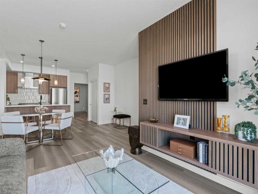 ROOFTOP PATIO • STUNNING MOUNTAIN VIEWS. This pre-construction 2-bedroom, 1-bathroom condo offers a thoughtfully designed layout with approximately 607 sq. ft. of contemporary living space. Featuring 9+ ft. ceilings, sleek quartz countertops, and large windows, the home is bathed in natural light while capturing spectacular mountain views. Scheduled for Summer 2027 possession (or earlier), the unit includes titled underground parking, private storage, and access to a common-area car wash. Residents will enjoy an impressive rooftop patio complete with panoramic mountain views, BBQ stations, and a bonfire lounge—ideal for entertaining or unwinding.