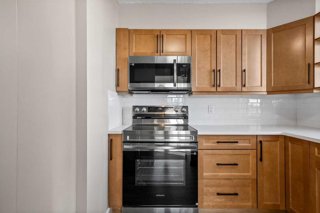 Inside, the bright and open layout has been freshly painted, creating a functional and inviting space perfect for everyday living and entertaining. Thoughtful updates include wide neutral luxury vinyl plank flooring throughout, a beautifully renovated kitchen with solid wood cabinetry featuring dovetail drawers, imported quartz countertops, a tiled backsplash, and brand-new stainless steel appliances. Natural light fills the space, highlighting the modern finishes and expansive views.