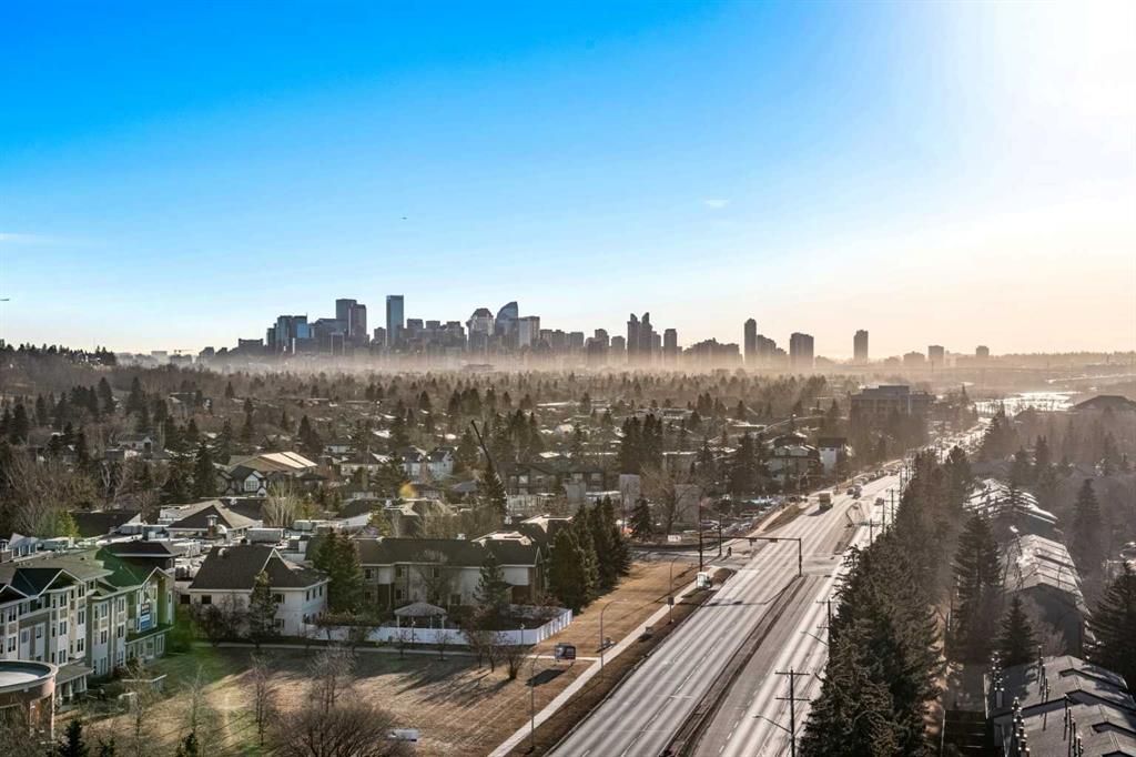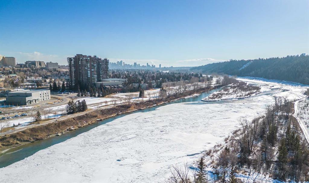 Welcome to Riverside Towers in Point McKay, one of Calgary's most desirable inner-city 18+ high-rise communities, perfectly situated along the banks of the Bow River and just minutes from downtown. This updated 2-bedroom, 2-bathroom corner unit feels like a luxurious hotel and is just minutes from downtown. It boasts stunning floor-to-ceiling, 180-degree panoramic views of the Calgary skyline and the scenic northwest rolling hills.