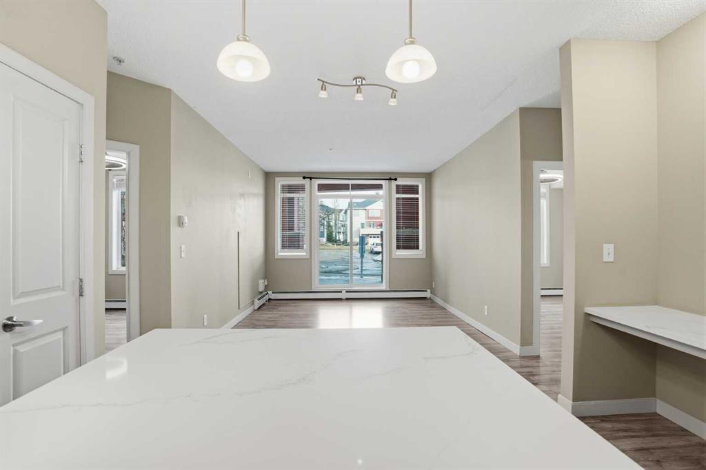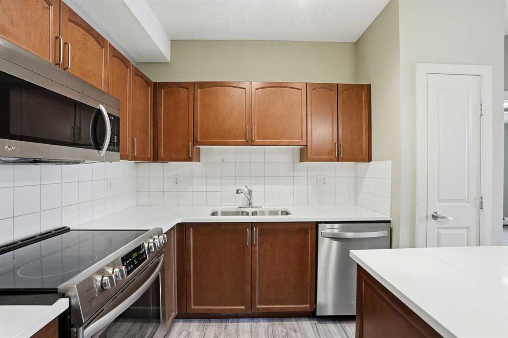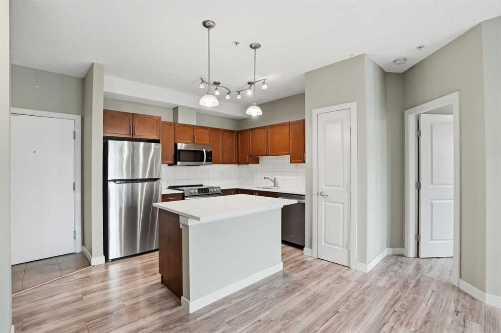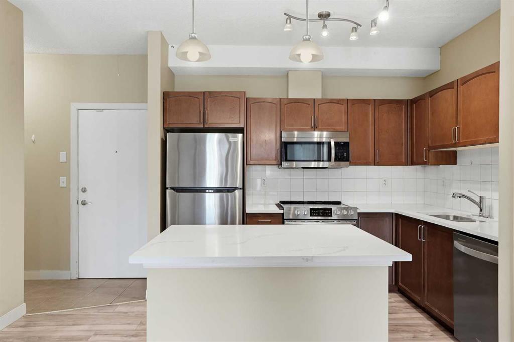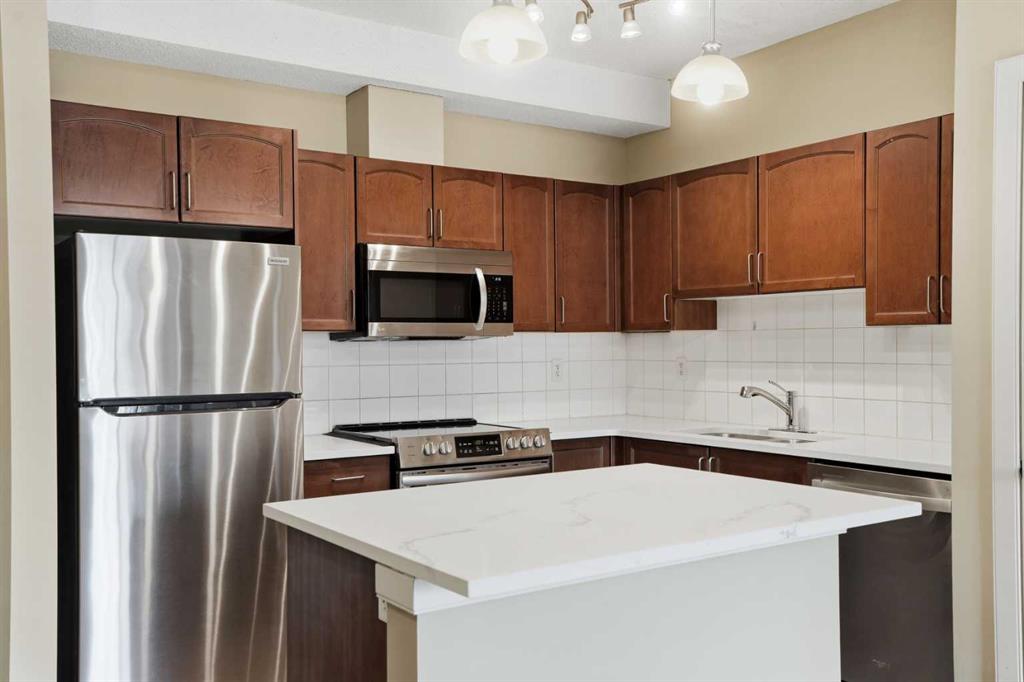 Located on the Country Hills Village Pond | Gorgeous Main Level Apartment | 2 Bedrooms | 2 Bathrooms with New Sinks & Faucets | Open Floor Plan | Bright with Natural Light | Brand New Quartz Countertops | Stainless Steel Appliances | Kitchen Island | Built-in Work Station | Great Storage | In-Unit Laundry | Underground Titled Parking | Secure Entry Building | Visitor Parking. Welcome to this stunning 2 bed, 2 bath main level apartment boasting 847 SqFt with an open floor plan kitchen, dining and living areas. The front door to your home opens to a tiled foyer with closet storage and past this is your in unit laundry. The open floor plan with high ceilings and large windows throughout the kitchen, dining and living rooms compliments the size of the space. The kitchen is outfitted with new quartz countertops, stainless steel appliances and great cabinet storage. The open concept living means you can choose where you'd like your dining table to go! The living room is comfortable and bright and is paired with sliding glass doors to your patio. The two bedrooms are located on either side of the living room giving additional privacy. The primary bedroom has a walk-through closet to a 3pc ensuite bath. The 2nd bedroom is a great size and just outside the door is the 4pc bath with a tub/shower combo. This unit comes with a titled underground parking stall that keeps your vehicle weather protected year round! Step outside and you’re just moments away from a serene pond, picturesque walking paths, a nearby golf course, public transit, and a variety of shopping and dining options. You’ll also love the easy access to Deerfoot Trail, Stoney Trail, and the Calgary International Airport. Whether you're a first-time buyer, investor, or downsizer, this home offers comfort, convenience, and excellent value in a well-maintained building with low condo fees. Book your showing today and experience everything life in Country Hills Village has to offer!