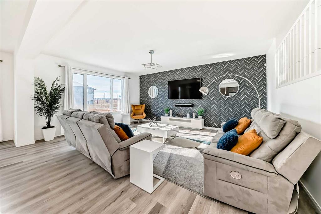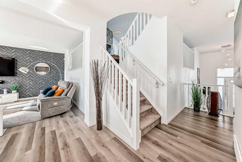 Welcome to 73 Carrington Circle NW, a beautifully designed detached home offering 2,258 square feet of refined living space in the growing northwest community of Carrington. Built in 2019, this four-bedroom, 3.5-bathroom home stands out for its thoughtful layout and attention to privacy. The open-concept main floor centres around a chef’s kitchen with a stunning quartz island, generous prep space, and a dining area ideal for gathering. Strategic positioning ensures the kitchen and living room are not directly visible to neighbouring homes, creating a comfortable sense of separation. Beautiful hardwood flooring runs throughout, while the gas fireplace and modern finishes add warmth and cohesion. A unique bonus room positioned between the main and upper levels serves as a dedicated games and entertainment space, designed to stay visually connected to the main living area while offering its own defined purpose. Upstairs, the bedrooms are bright and well proportioned, with lovely sunrise views through the feature “yellow window.” The conveniently located laundry room sits just steps from the bedrooms, enhancing everyday functionality. The fully finished basement adds further flexibility with a fourth bedroom and additional storage. Outside, the fully landscaped, zero-maintenance backyard is designed for relaxation and ease, featuring concrete and stonework, a hot tub, and an enclosed gazebo for year-round enjoyment. An oversized double garage and modern façade complete the exterior. Residents of Carrington enjoy access to parks, walking paths, nearby schools, and convenient routes to Stoney Trail and Centre Street, offering a balanced lifestyle with both connectivity and a quiet residential atmosphere.