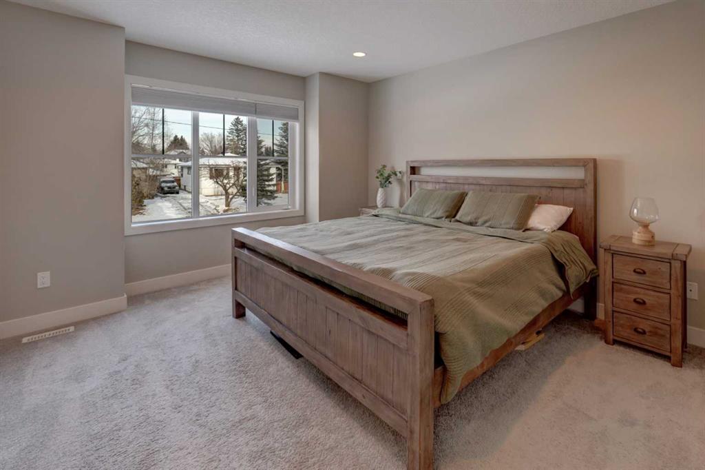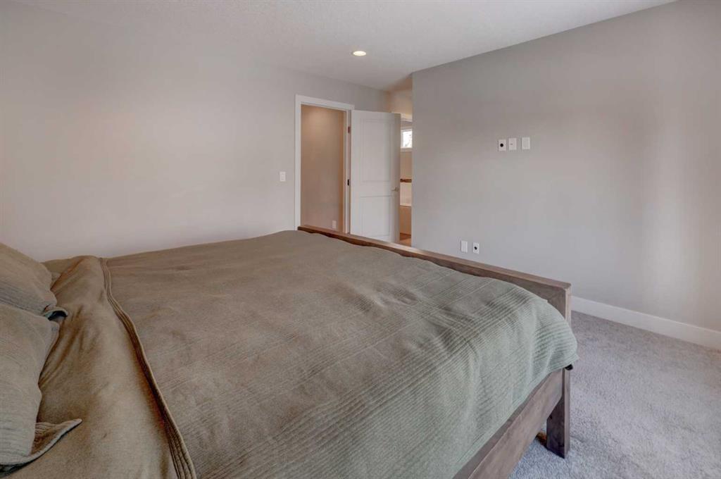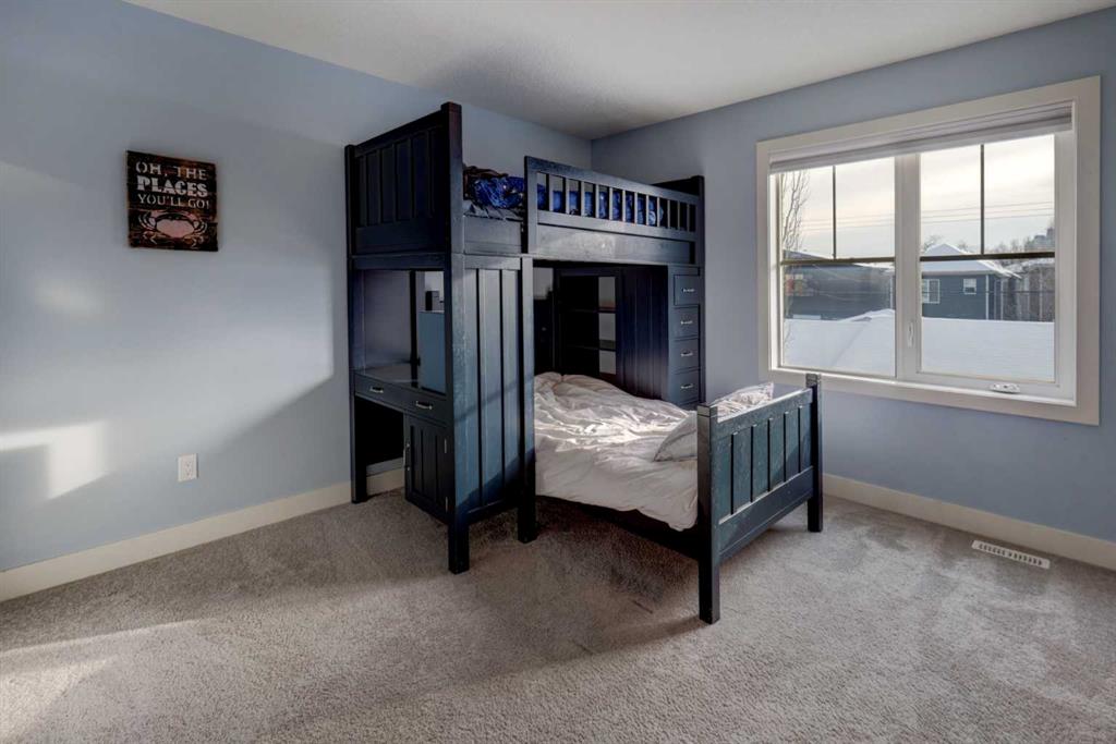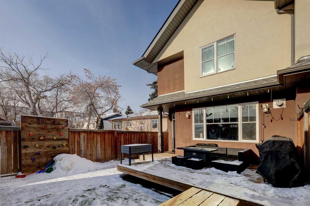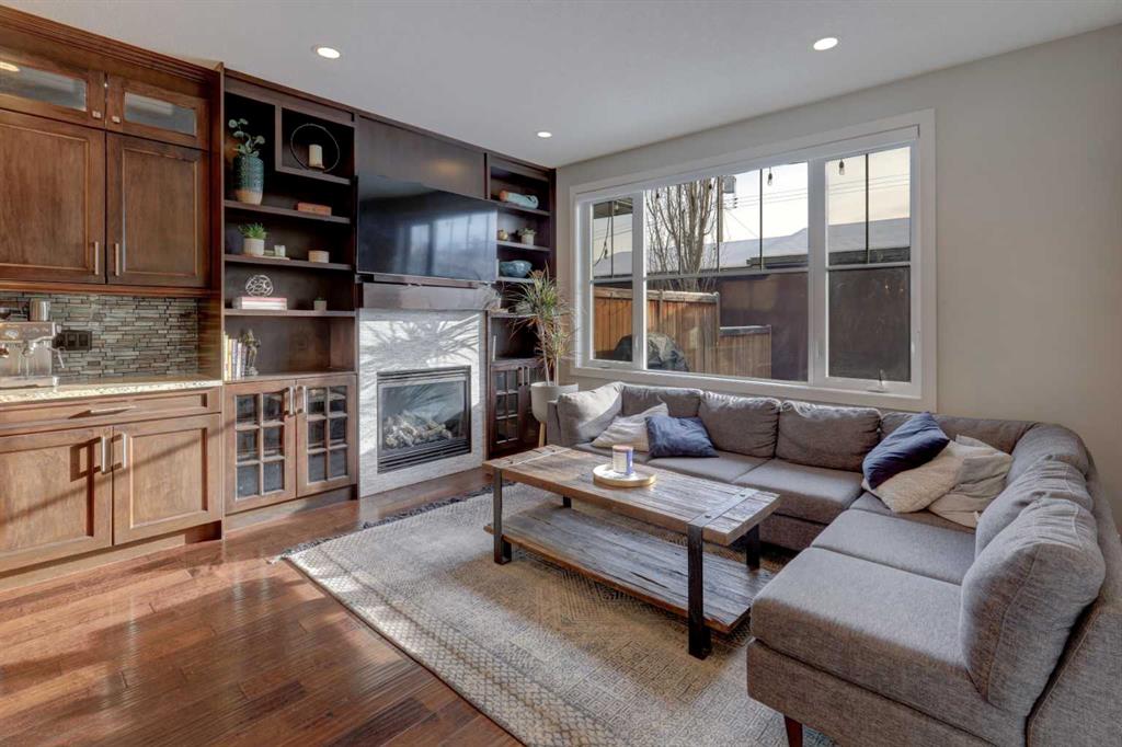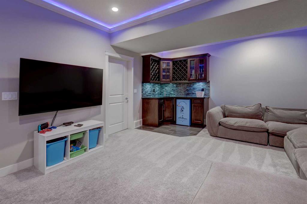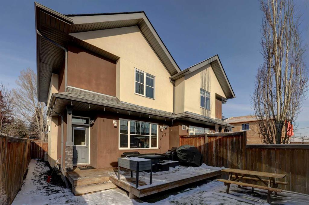 his stunning home offers a very bright & open floor plan, thoughtfully designed for both everyday living & entertaining. The inviting living room features a cozy fireplace & a large window that fills the space with an abundance of natural light. The island kitchen is a true showpiece, showcasing granite countertops, soft-close cabinetry, corner pantry & upper & under LED lighting. High-end stainless steel appliances, including the washer & dryer, complete the space with both style & functionality. The spacious primary suite is a private retreat, featuring a custom walk-in closet with built-in organizers & a luxurious ensuite with a jetted jacuzzi tub & a beautifully tiled rain shower. Two additional well-sized bedrooms & convenient upper-level laundry complete the second floor. The fully developed basement extends the living space with an additional bedroom boasting a large walk-in closet, a full bathroom, & an impressive theatre room with a wet bar—perfect for movie nights or hosting guests. Outside, the south-facing backyard is ideal for enjoying the sun, offering a large deck & an exposed aggregate concrete patio. Additional highlights include air conditioning & a drywalled, heated double detached garage. All this with easy access to downtown & all amenities - SAIT, University of Calgary, shopping, coffee shops, restaurants, public transportation & so much more! You’ll love living here!!!