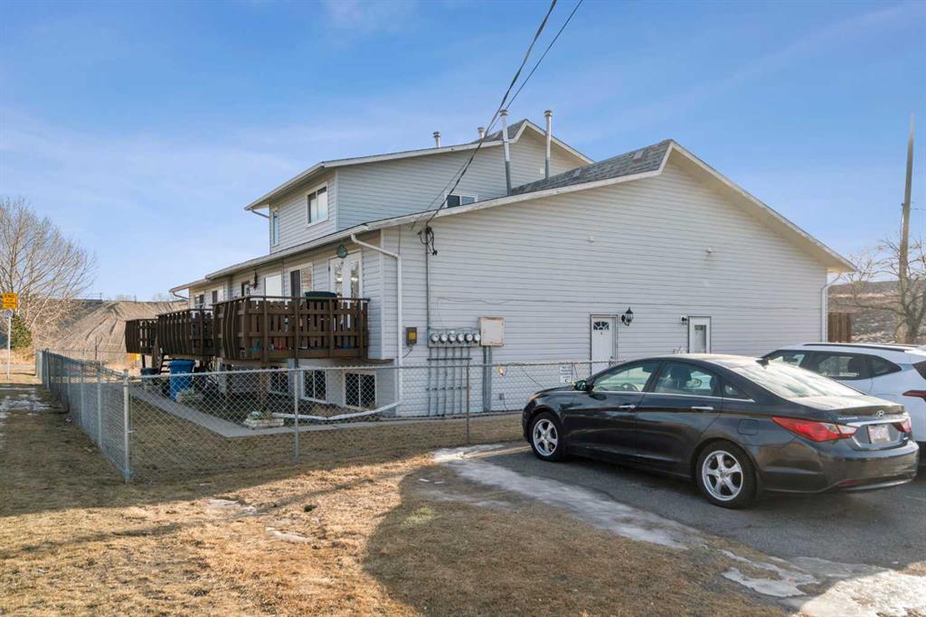 Inside, the home has been updated with laminate flooring, fresh paint, modern light fixtures, updated trim, and new switches and plugs, creating a bright, move-in-ready interior. The open main floor features a bright living living area, convenient half bath, in-suite laundry, and access to a large deck — ideal for morning coffee, BBQs, or outdoor dining.