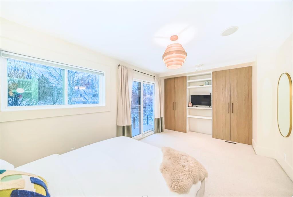 The primary bedroom’s patio doors have been widened with new sliding doors installed, along with a newly cut window that brings in even more west facing light.