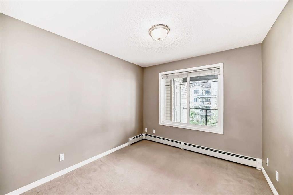 Excellent location and views in The Pavilions of Rocky Ridge. This well-appointed condo offers a highly functional layout with a spacious great room that comfortably accommodates full-sized furniture and a large-screen television. The thoughtful floor plan provides excellent privacy, with bedrooms positioned on opposite sides of the living area. The kitchen features ample counter space and a dedicated eating area, while the generously sized primary bedroom easily fits a king-size bed and includes a walk-in closet with built-in cabinetry and a private 3-piece ensuite. A well-proportioned second bedroom, a full 4-piece bathroom, and a large laundry room complete the interior. Step out onto the oversized balcony and enjoy beautiful mountain views. Additional highlights include heated titled underground parking and access to outstanding building amenities such as a party room, theatre, fitness centre, and billiards room. Ideally located within walking distance to the LRT, tennis courts, parks, pathways, and bike trails, with quick access to the University of Calgary, downtown, Bowness Park, Rocky Ridge YMCA, and major routes including Stoney Trail — making both city commutes and mountain getaways effortless.