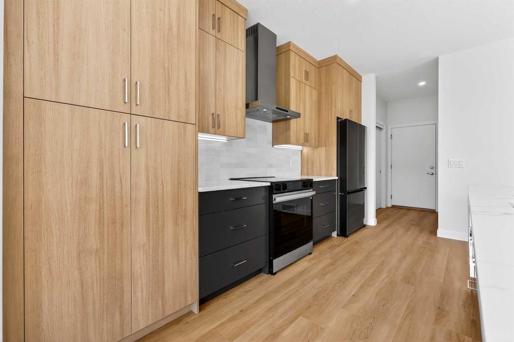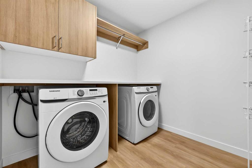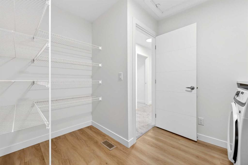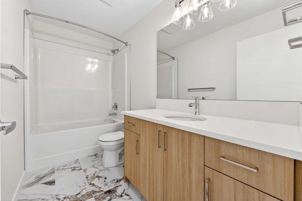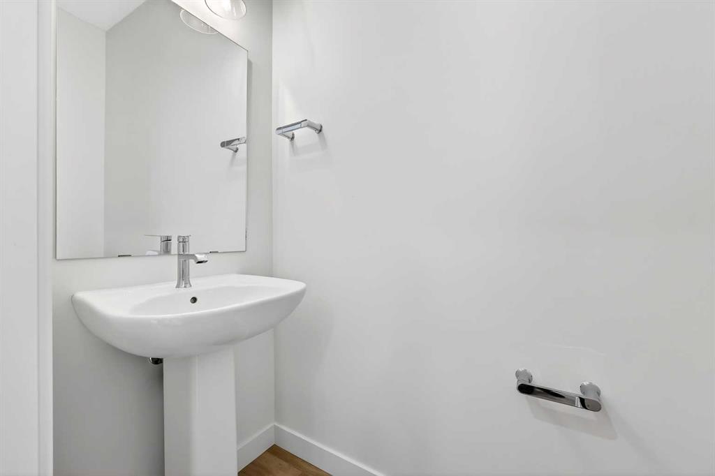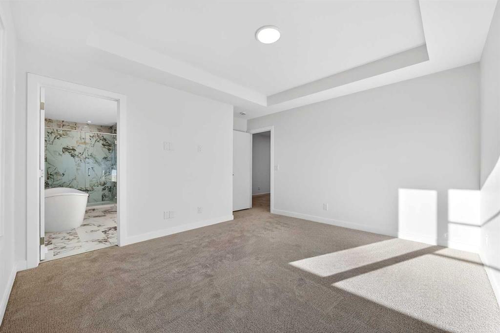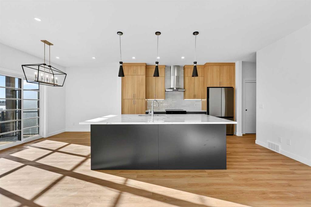 Experience the height of sophisticated living in this highly coveted luxury townhome, where a generous floor plan meets modern comfort and refined finishes. Proudly presented by StreetSide – this thoughtfully designed unit features 3 bedrooms, 2.5 bathrooms, and a front attached double car garage. The heart of the home is a spacious kitchen with a large central island, polished white quartz countertops, upgraded stainless steel appliances, and elegant sliding French patio doors that open to your covered deck area—ideal for both everyday living and entertaining. Light floods into the living room with ease through the large window, while luxury vinyl plank flooring flows throughout the main floor living areas, and carpeted stairs leading to the upper level and bedrooms provide extra warmth. The primary ensuite is a private sanctuary, complete with tile flooring, double sinks, a freestanding soaker tub, and an oversized tile-and-glass shower delivering spa-inspired comfort at home. The unfinished basement with roughed-in plumbing provides future potential for additional living space tailored to your needs. Professional landscaping and fencing complete your new home. Ideally located in the award-winning community of Harmony, residents enjoy Mickelson National Golf Course, private lake amenities, scenic walking and biking trails, and a wellness-focused lifestyle—just a shorty drive from Calgary city minutes and 45 minutes from the Rocky Mountains, where nature and convenience come together effortlessly
