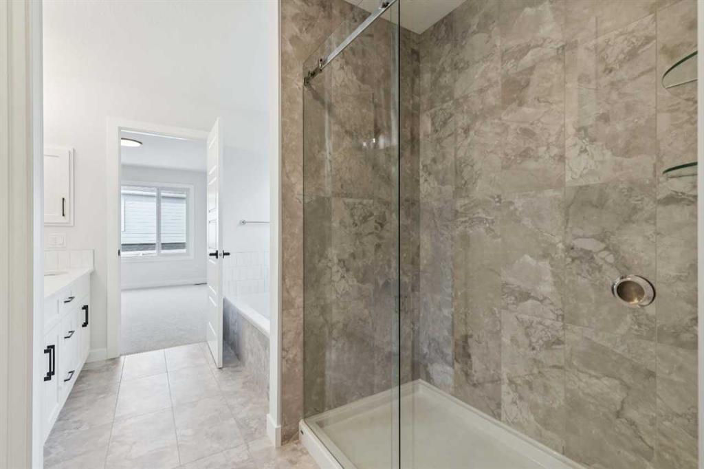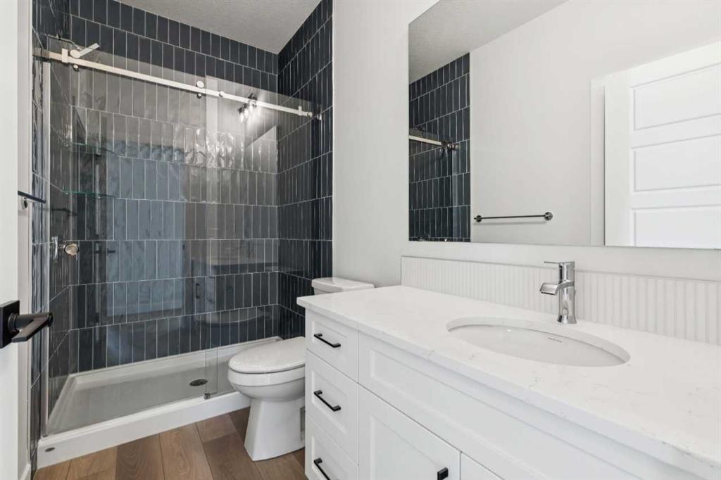 With a convenient side entrance and a main floor bedroom with full bath, it’s perfect for guests. The executive kitchen offers built-in stainless steel appliances, gas cooktop, walk-in pantry, waterfall edge island, and stylish pendant lighting. Soaring ceilings in the open-to-above great room create a grand atmosphere, anchored by a sleek electric fireplace. A 75 US gallon gas water heater ensures consistent comfort and efficiency throughout the home. Enjoy the outdoors on the full-width rear deck, and unwind upstairs in the spacious primary bedroom with a luxurious five-piece ensuite. This energy-efficient home is Built Green certified and includes triple-pane windows, a high-efficiency furnace, and a solar chase for a solar-ready setup. With blower door testing that may be eligible for up to 25% mortgage insurance savings, plus an electric car charger rough-in, it’s designed for sustainable, future-forward living.