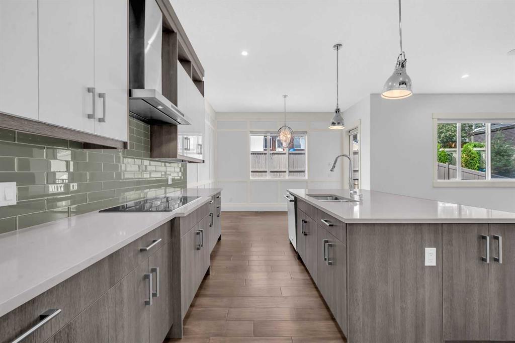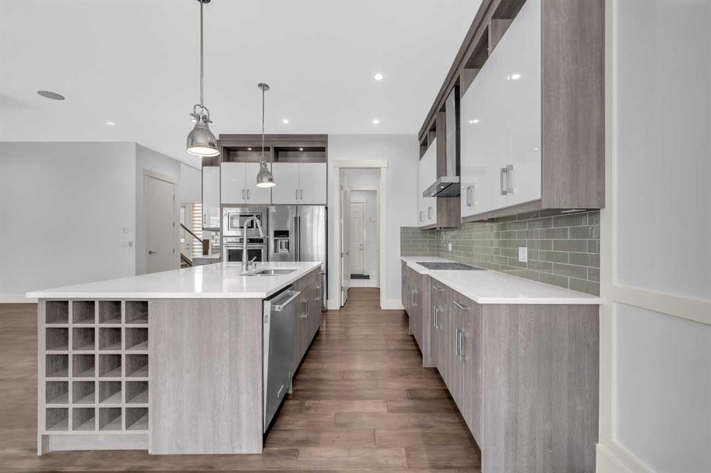 **OPEN HOUSE SUNDAY JAN 25 BETWEEN 12PM-3PM** | Exceptional Luxury Living in Evanston – 2-Storey Executive Home | 5 Bedrooms + Den (2 Ensuites) | Finished Basement w/ Side Entrance | A/C | Stucco Exterior. Welcome to this immaculately maintained and extensively upgraded luxury home located in the highly sought-after community of Evanston. Perfectly designed for large families and multi-generational living, this impressive 2-storey residence offers a thoughtfully planned layout with over 3,000 sq. ft. of living space across three levels, including 4 spacious bedrooms upstairs, a main-floor den, and a fully finished basement.As you step into the grand foyer, you're greeted by 9-foot ceilings, warm hardwood flooring that flows throughout the main level, and an abundance of natural light. The inviting living room is anchored by a beautifully tiled centered gas fireplace, creating a cozy and elegant space to unwind or entertain.The heart of the home is the chef-inspired kitchen, featuring ceiling-height cabinetry, high-end stainless steel built-in appliances, sleek quartz countertops, and an expansive island with bar seating — ideal for casual dining or hosting guests. A spacious walk-through pantry leads conveniently to the mudroom and garage, offering additional storage and functionality. Adjacent to the kitchen is a generous dining area that overlooks the fully landscaped backyard, creating a seamless indoor-outdoor experience.Also on the main level is a flexible den space, perfect as a home office, guest room, or fifth bedroom, offering convenience and versatility for changing family needs.Upstairs, the home continues to impress with 4 generously sized bedrooms, each offering ample closet space and large windows. Three of the bedrooms feature private ensuite bathrooms, making this an ideal setup for families or guests who value privacy. The primary suite is a true luxury retreat, complete with a large walk-in closet and an opulent 5-piece ensuite featuring dual sinks, a deep soaker tub, separate glass shower, and high-end tile finishes throughout. A bright and open bonus room completes the upper level — perfect as a secondary living space, playroom, or media lounge.The professionally finished basement offers even more space to live and entertain. With a separate side entrance, this level includes a huge family/recreation room, a fully equipped wet bar, a spacious bedroom, and room to potentially add an additional bathroom or kitchen setup for future rental income or extended family living. Outside, the home is complete with a fully landscaped and fenced backyard, ideal for summer BBQs, kids’ play, or quiet evenings outdoors. The durable stucco exterior adds both style and low-maintenance protection, while the addition of central air conditioning ensures year-round comfort. Every inch of this home has been meticulously designed and upgraded to offer style, space, and functionality.