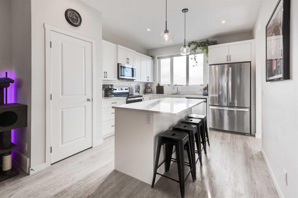 HOME SWEET HOME! Welcome to this beautifully designed CUSTOM-BUILT 2022 SEMI-DETACHED HOME offering modern style, thoughtful finishes, and exceptional community living in one of Southeast Calgary’s most exciting and newer neighborhood's, Rangeview! This 3 bedroom, 2.5 bathroom home with 1418 spectacular SQFT (above grade) and 672 Developable Basement SQFT, showcases a bright open-concept main floor ideal for both everyday living and entertaining. 9 foot ceilings, stylish designer lighting, and warm wood-tone laminate flooring create a welcoming and contemporary atmosphere, expansive windows flood the living and dining areas with natural light, enhancing the spacious feel throughout. The gourmet chef’s kitchen is both elegant and functional, featuring crisp white cabinetry, quartz countertops, spacious, central quartz island with a breakfast bar and newer, premium stainless steel appliances A convenient 2 piece powder room completes the main level. Upstairs, plush carpeting adds comfort to the private living spaces. The generous primary bedroom easily accommodates a king-sized bed and offers a large closet, a 4-piece spa-like ensuite bathroom, and north-facing windows with city views. Two additional great-sized bedrooms, a full 4-piece bathroom, and a dedicated upper-floor laundry room provide excellent functionality for families or professionals alike. The home is finished in a neutral, modern colour palette, ready for your personal style and décor. The unfinished basement offers you an amazing space to showcase your vision for future development with a roughed-in bathroom and Egress Window. Enjoy added privacy with no rear neighbours, creating a peaceful backyard retreat ideal for relaxing or entertaining. There is also a parking pad that can accommodate at least 2 vehicles. Located in Rangeview, a thoughtfully designed and sustainable community steps from community gardens abundant walking paths, scenic wetlands, beautifully planned parks and green spaces, minutes from the South Health Campus, the largest YMCA in the world, and the vibrant Urban Village offering shopping and dining options. Rangeview offers a lifestyle that blends modern convenience with outdoor living and true neighbourhood charm. Don’t miss out on this GEM, book your private viewing today!