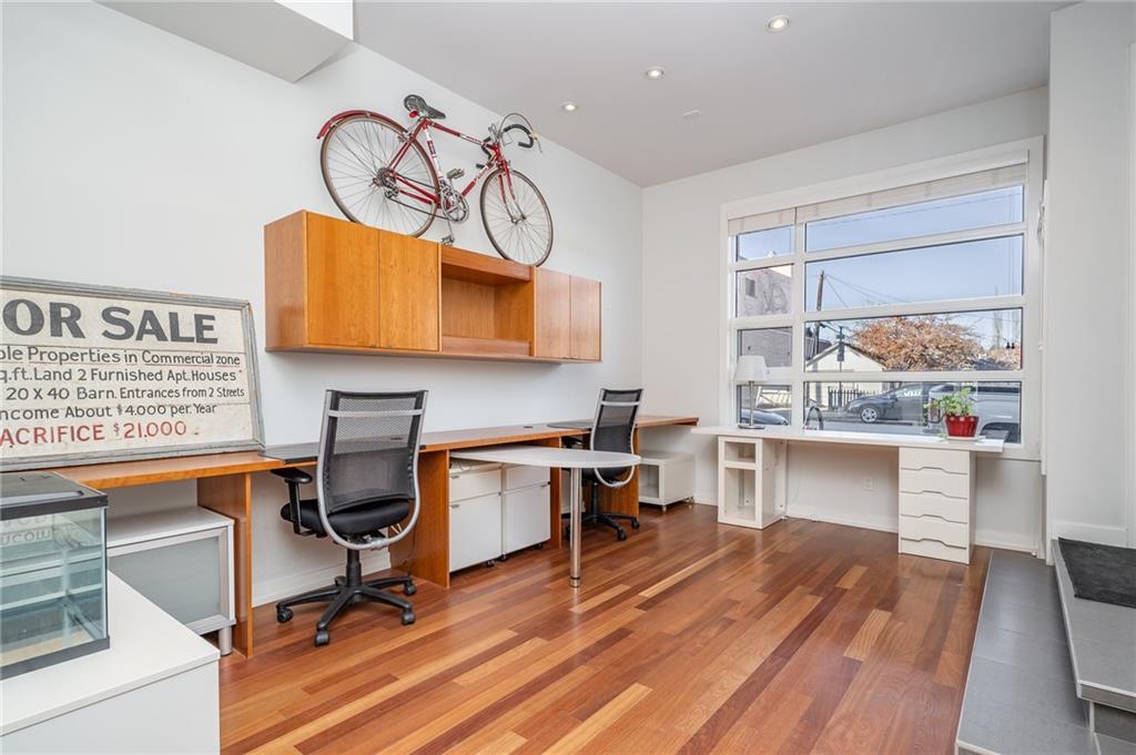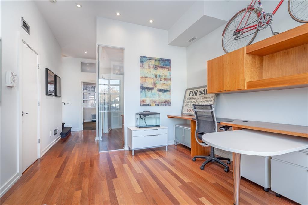 HOME SWEET HOME! LIVE, WORK and THRIVE IN THE HEART OF BRIDGELAND! Discover the perfect blend of urban living and professional functionality in this exceptional multi-level live/work condo at The Olive, situated in the vibrant and sought-after community of Bridgeland. Ideal for entrepreneurs, creatives, or anyone seeking the convenience of combining home and office in one stylish space. The main 2 levels offers a contemporary commercial/office space and a 2-piece bathroom, perfect for welcoming clients or hosting collaborative meetings. Upstairs, the second level boasts a gourmet kitchen, a versatile office/den/bedroom, another 2-piece bath, and a sophisticated living space complete with a gas fireplace and a charming Romeo and Juliet balcony. The third floor features two generously sized bedrooms (or additional office spaces), a luxurious 5-piece bathroom with a soaker tub, walk-in shower, and double vanity, plus a private balcony. Step outside to your spacious rooftop patio, ideal for entertaining or enjoying the city skyline. Additional perks include two underground parking stalls and a large storage locker (12’x7’). With a registered size of 1,991 sq ft, this unit offers both comfort and flexibility. Experience Bridgeland’s unmatched lifestyle, just steps from trendy boutiques, artisanal cafes, acclaimed restaurants, river pathways, and easy access to the LRT. Whether you keep the current tenant or move in yourself, this property is ready to accommodate your vision. Live, work, and enjoy all that Bridgeland has to offer, book your private tour today! There is a 2 year tenant that is open to staying or it can be sold vacant if preferred.