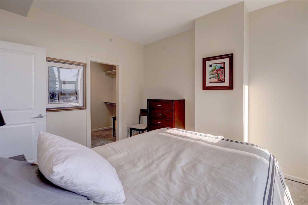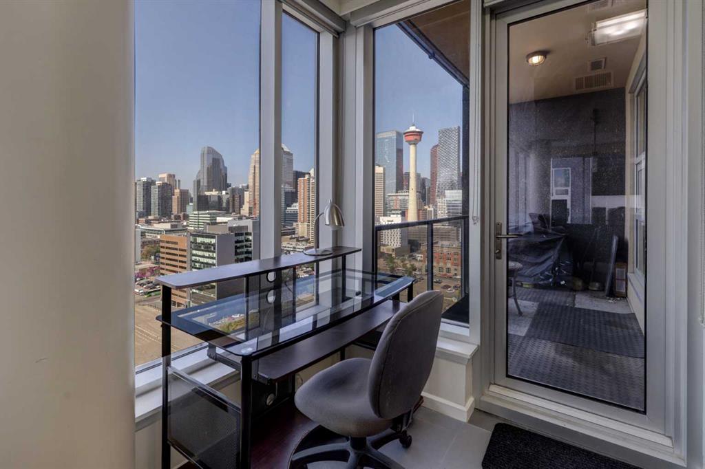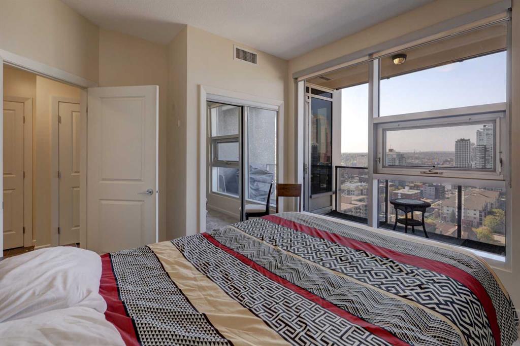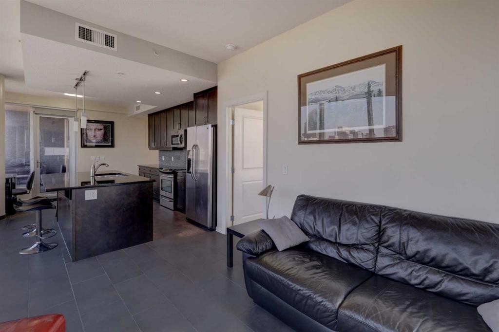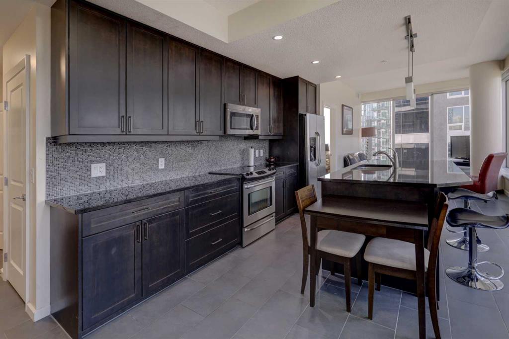 On the 18th floor, perched high above the city in the sought-after Nuera building, this upscale 2-bedroom, 2-bathroom adult-only residence offers unobstructed panoramic views of the downtown skyline and distant mountains—a stunning backdrop both day and night. Step inside and be captivated by the floor-to-ceiling windows that flood the space with natural light and frame the spectacular scenery from every angle day and night. The open-concept layout features a modern kitchen with granite countertops, upgraded cabinetry, perfect for entertaining or enjoying quiet evenings at home. The spacious primary bedroom also boasts floor to ceiling windows, a generous walk-in closet, and a stylish 4-piece ensuite. A second well-appointed bedroom and full bathroom offer flexibility for guests, a home office, or a roommate setup. Located just steps from Stampede Park and the new entertainment district, Nuera offers unmatched access to downtown amenities, dining, transit, and events. Building features include a large fitness centre, residents’ lounge, outdoor terrace, secure underground parking, and concierge service, all designed for comfort, convenience, and lifestyle. Don’t miss this incredible opportunity to own in one of Calgary’s premier high-rises. Call today to book your private showing!