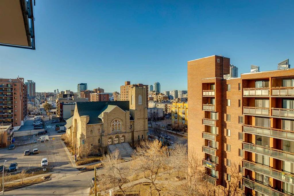 Flooded with natural light, this exceptional corner unit features two walls of floor-to-ceiling windows with beautiful views of the historic Grace Presbyterian Church. Recently updated with brand new flooring in the living areas and bedrooms, the home showcases 9’ ceilings in the living room, high-end finishes throughout, and a sleek, contemporary feel. The chef-inspired kitchen offers a sophisticated blend of dark wood and white cabinetry, quartz countertops, gas range, marble backsplash, and a large central island with breakfast bar. Thoughtful details include a pantry, coffee station, and integrated fridge and dishwasher, making the space as functional as it is stylish. The primary bedroom is a serene retreat with a crisp white ensuite featuring dual vanities, ample storage, a spacious shower, and a walk-in closet with built-in organizers. A second bedroom and full bathroom provide flexibility for guests, a home office, or shared living. In-suite laundry adds everyday convenience. Located in The Royal, a highly desirable building, residents enjoy outstanding amenities including a concierge desk, fitness centre, squash courts, sauna and steam room, a rooftop patio and garden, and a party room with fireplace and pool table. One assigned underground parking stall and a storage locker are included with this unit. Pets welcome with board approval. Set in the heart of vibrant 17th Avenue, this is a true walkable lifestyle surrounded by award-winning restaurants, cafés, boutiques, groceries, and everyday conveniences, with easy access to the downtown core. Perfect for a young professional, stylish couple, or empty nester seeking an active, urban lifestyle in one of the area’s most sought-after buildings.