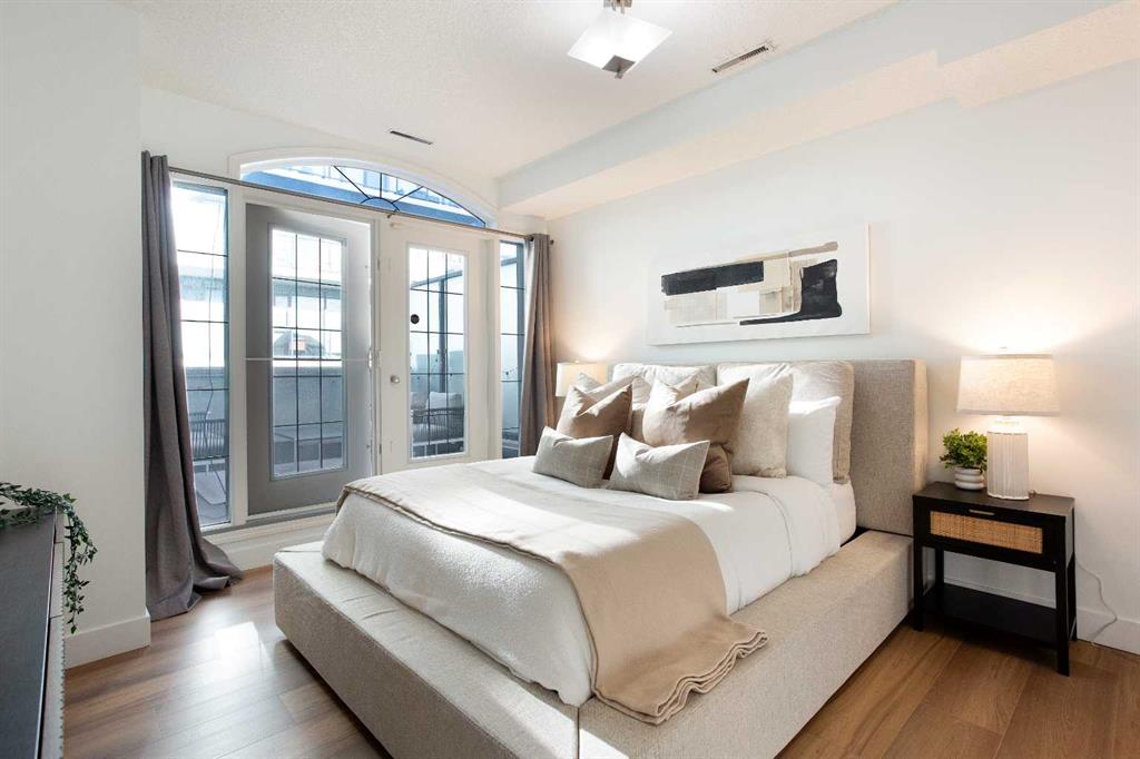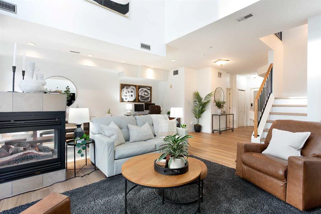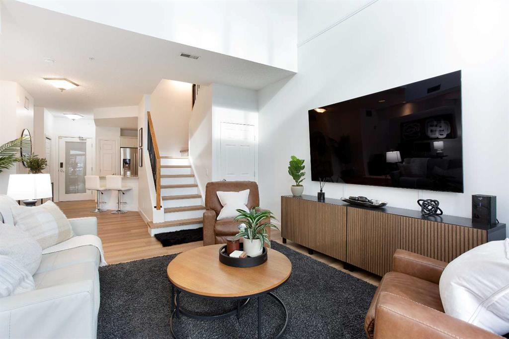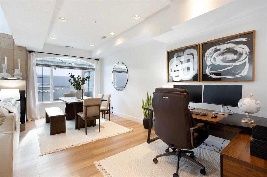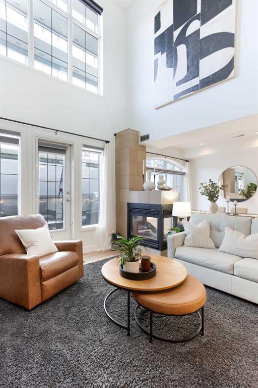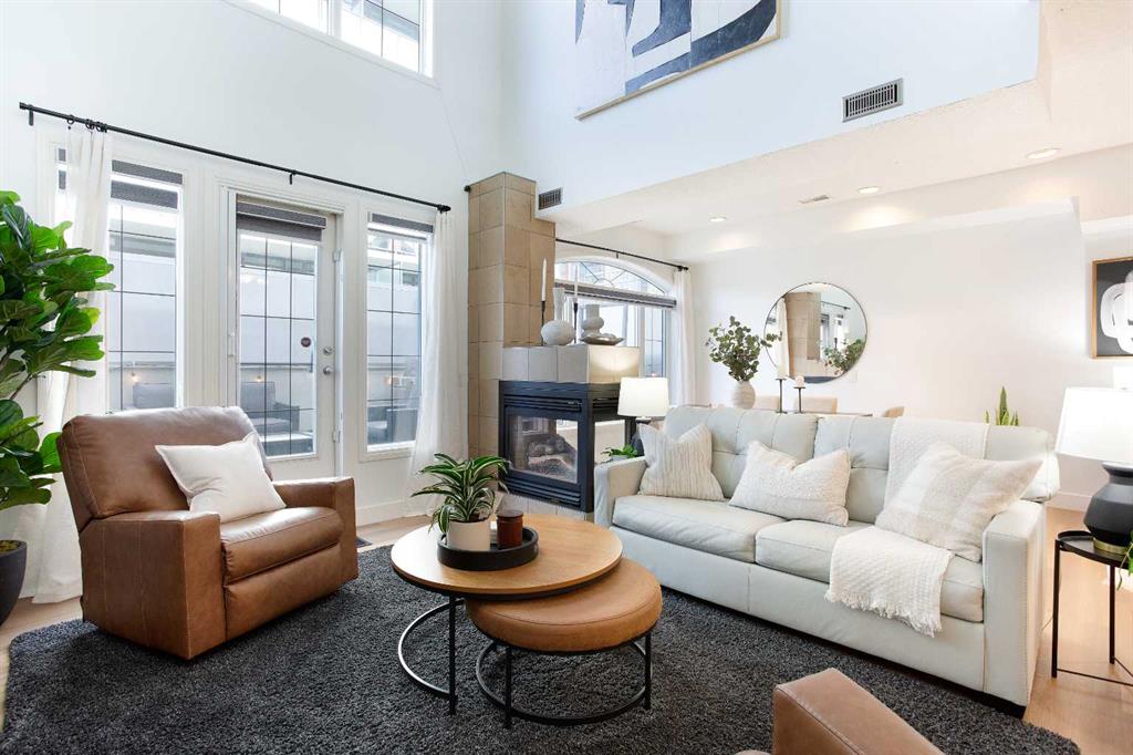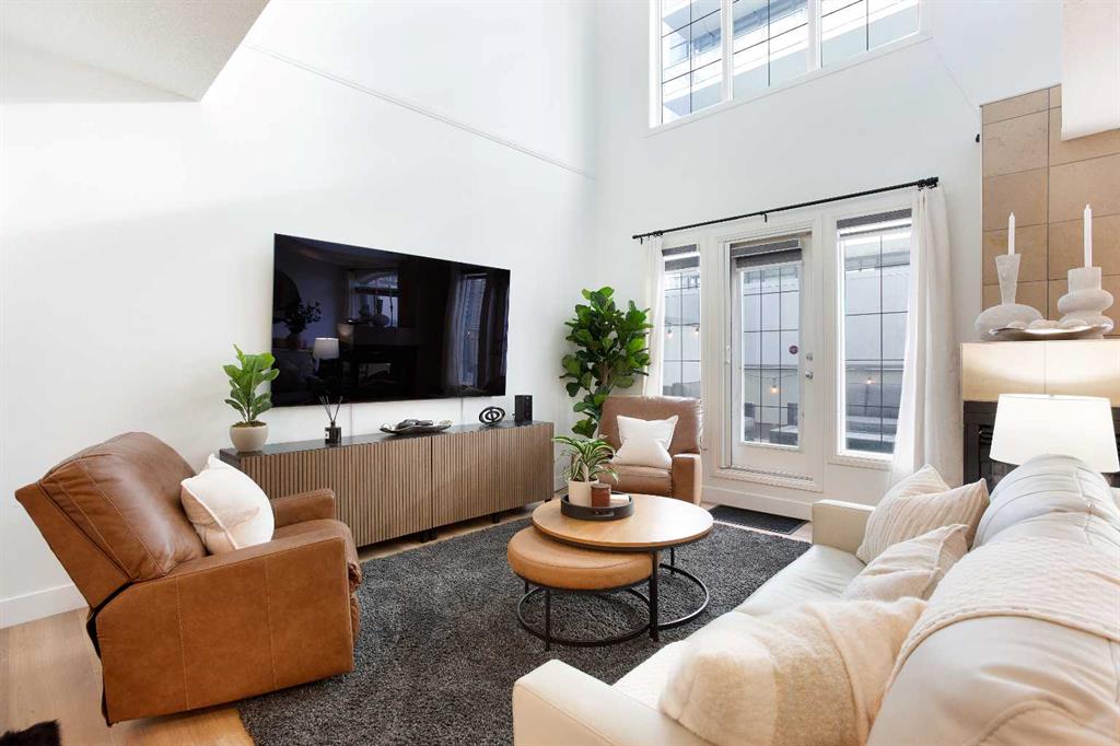 A distinctive 2-level condo offering rare flexibility through CC-X zoning, allowing both residential and commercial use within one of Calgary’s most dynamic urban communities. An upgraded interior pairs modern design with everyday functionality, creating an ideal opportunity for end urban buyers, investors or business owners seeking a space that adapts to changing needs. The main level unfolds with an open-concept layout where soaring open-to-above cathedral ceilings amplify natural light and volume, while a 3-sided fireplace delivers warmth and visual separation between living and dining areas for relaxed evenings or effortless hosting. A wall of glass opens directly to the first outdoor space, extending daily living outdoors and enhancing the connection to the city setting. Dining benefits from the second side of the fireplace, setting an inviting backdrop for gatherings, while an adjacent flex area offers a practical solution for a home office or creative workspace. Culinary pursuits are inspired in the well-appointed kitchen finished with granite countertops, stainless steel appliances, classic subway tile and a breakfast bar designed for casual meals and conversation. A full 4-piece bathroom on this level adds convenience for guests and daily use. Upper-level access is thoughtfully designed with a separate entry, introducing exceptional versatility for multi-use living or professional applications. A private primary retreat features French door access to the second outdoor space, creating a peaceful setting for morning coffee or evening downtime framed by city views. Comfort continues with a private 4-piece ensuite and a generous walk-in closet supporting organized, stress-free living. A second bedroom on this level easily functions as guest accommodation or a dedicated office, reinforcing the adaptability of the layout. Central air conditioning ensures year-round comfort, while in-suite laundry supports daily efficiency. Underground heated parking adds secure, weather-protected convenience. Short-term rentals are permitted, enhancing investment flexibility and income potential. Located within The Lincoln, this Beltline address places daily essentials, restaurants, fitness studios, professional services and public transit within easy reach, supporting a walkable lifestyle with immediate access to downtown energy, 17 Avenue amenities and Calgary’s evolving urban core. All furniture for sale / negotiable
