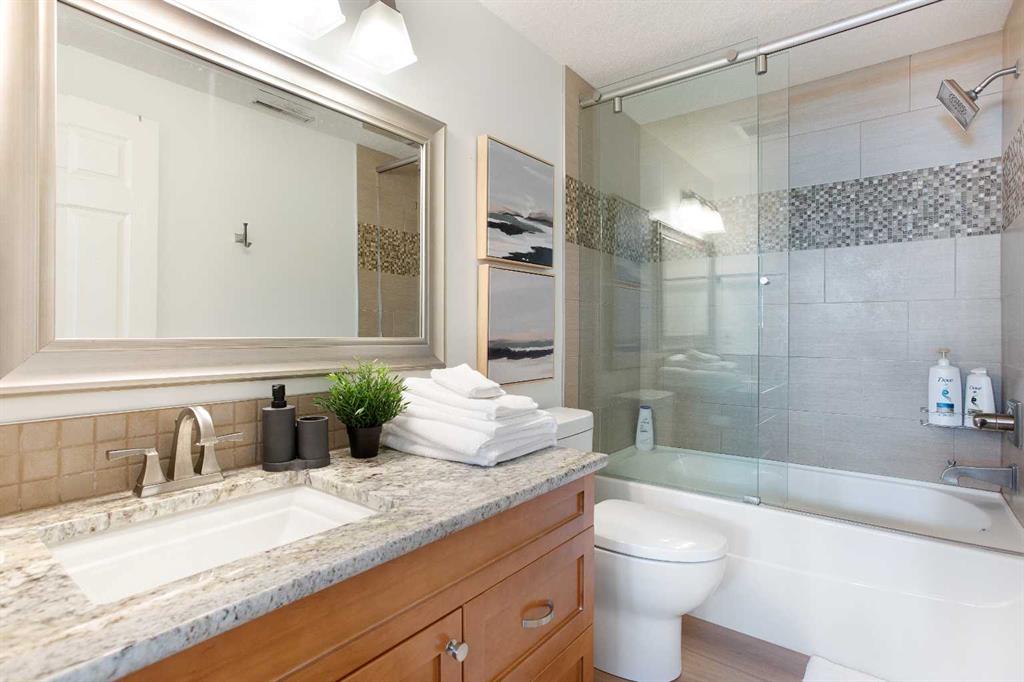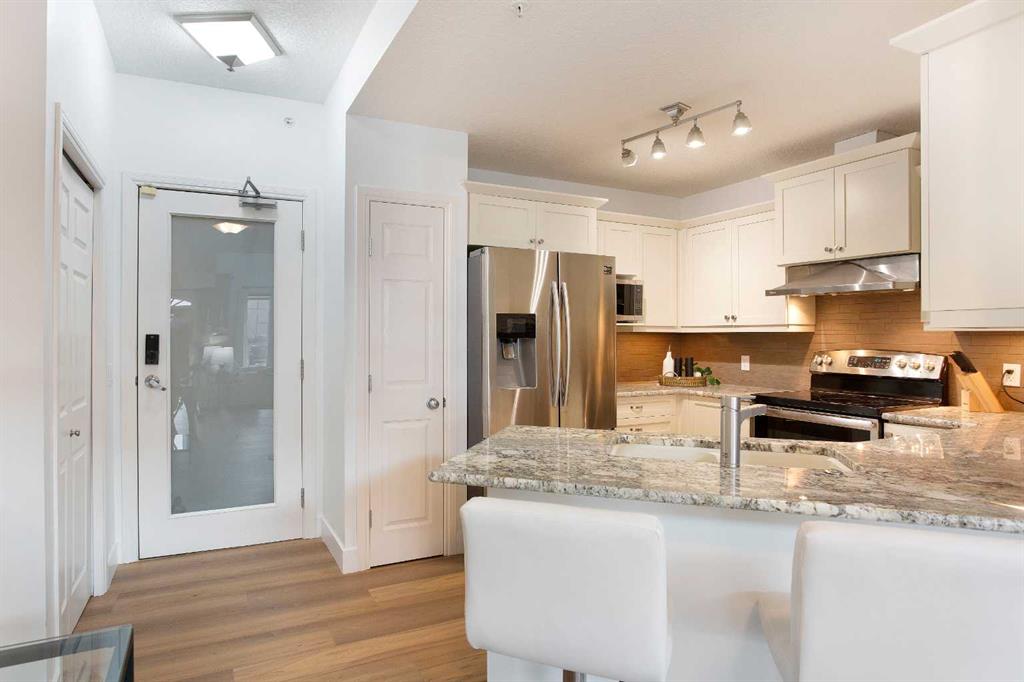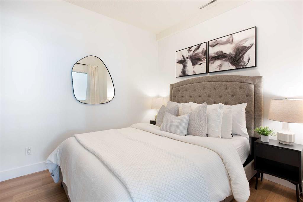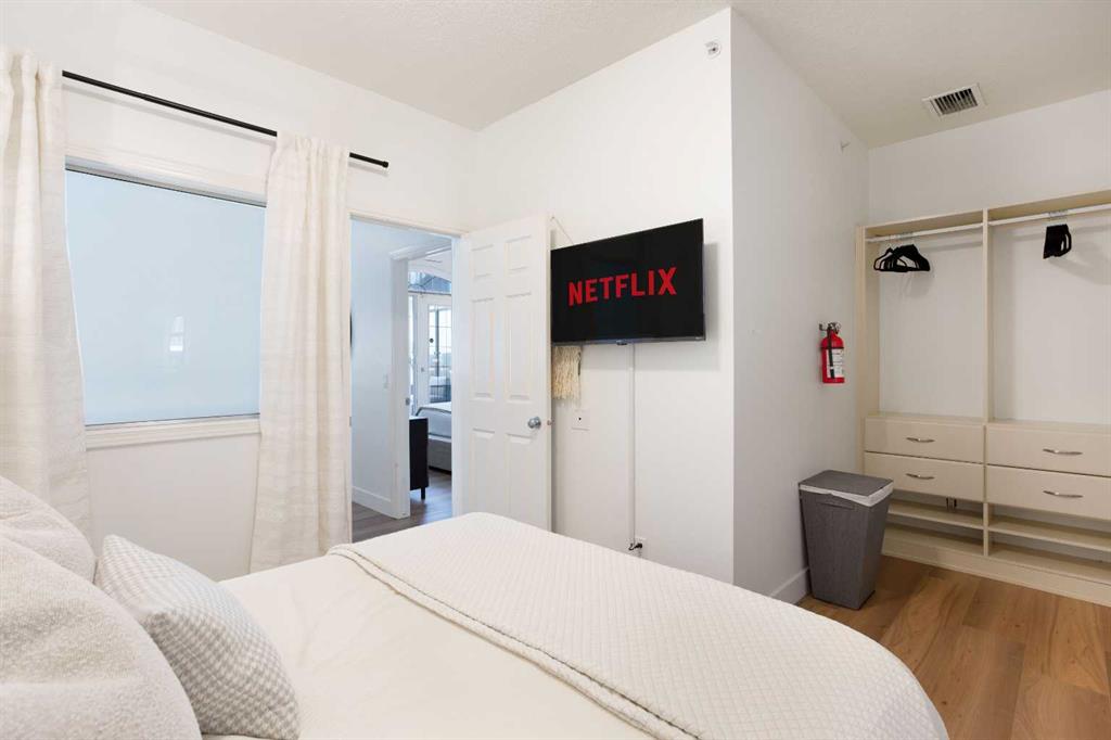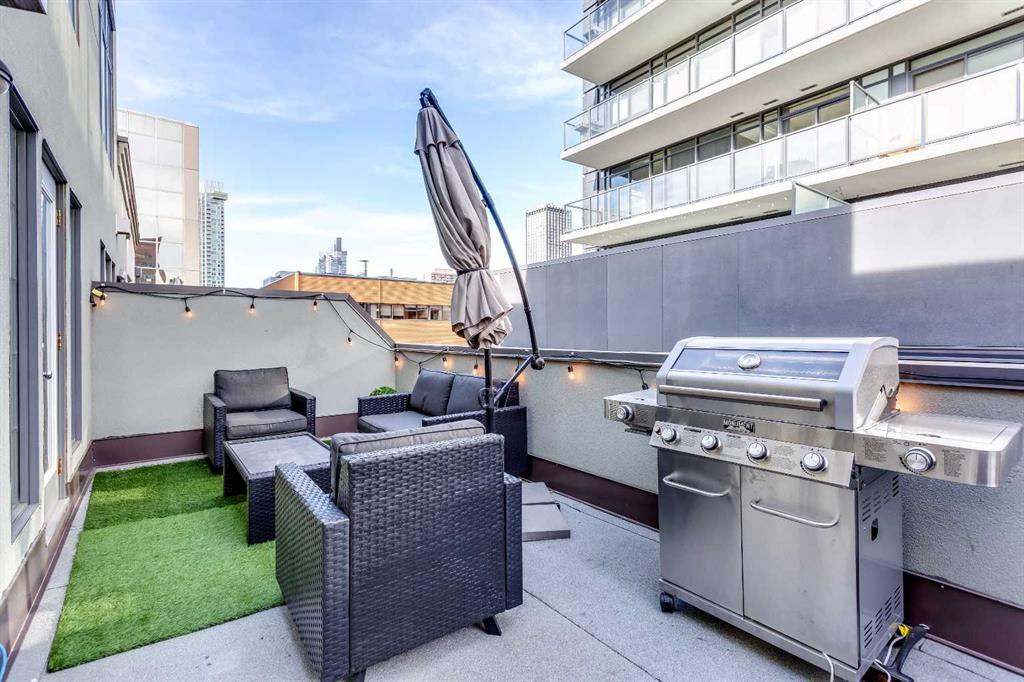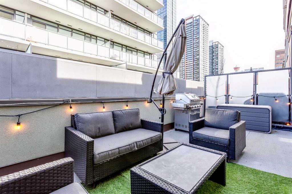 A distinctive 2-level condo offering rare flexibility through CC-X zoning, allowing both residential and commercial use within one of Calgary’s most dynamic urban communities. An upgraded interior pairs modern design with everyday functionality, creating an ideal opportunity for end urban buyers, investors or business owners seeking a space that adapts to changing needs. The main level unfolds with an open-concept layout where soaring open-to-above cathedral ceilings amplify natural light and volume, while a 3-sided fireplace delivers warmth and visual separation between living and dining areas for relaxed evenings or effortless hosting. A wall of glass opens directly to the first outdoor space, extending daily living outdoors and enhancing the connection to the city setting. Dining benefits from the second side of the fireplace, setting an inviting backdrop for gatherings, while an adjacent flex area offers a practical solution for a home office or creative workspace. Culinary pursuits are inspired in the well-appointed kitchen finished with granite countertops, stainless steel appliances, classic subway tile and a breakfast bar designed for casual meals and conversation. A full 4-piece bathroom on this level adds convenience for guests and daily use. Upper-level access is thoughtfully designed with a separate entry, introducing exceptional versatility for multi-use living or professional applications. A private primary retreat features French door access to the second outdoor space, creating a peaceful setting for morning coffee or evening downtime framed by city views. Comfort continues with a private 4-piece ensuite and a generous walk-in closet supporting organized, stress-free living. A second bedroom on this level easily functions as guest accommodation or a dedicated office, reinforcing the adaptability of the layout. Central air conditioning ensures year-round comfort, while in-suite laundry supports daily efficiency. Underground heated parking adds secure, weather-protected convenience. Short-term rentals are permitted, enhancing investment flexibility and income potential. Located within The Lincoln, this Beltline address places daily essentials, restaurants, fitness studios, professional services and public transit within easy reach, supporting a walkable lifestyle with immediate access to downtown energy, 17 Avenue amenities and Calgary’s evolving urban core. All furniture for sale / negotiable