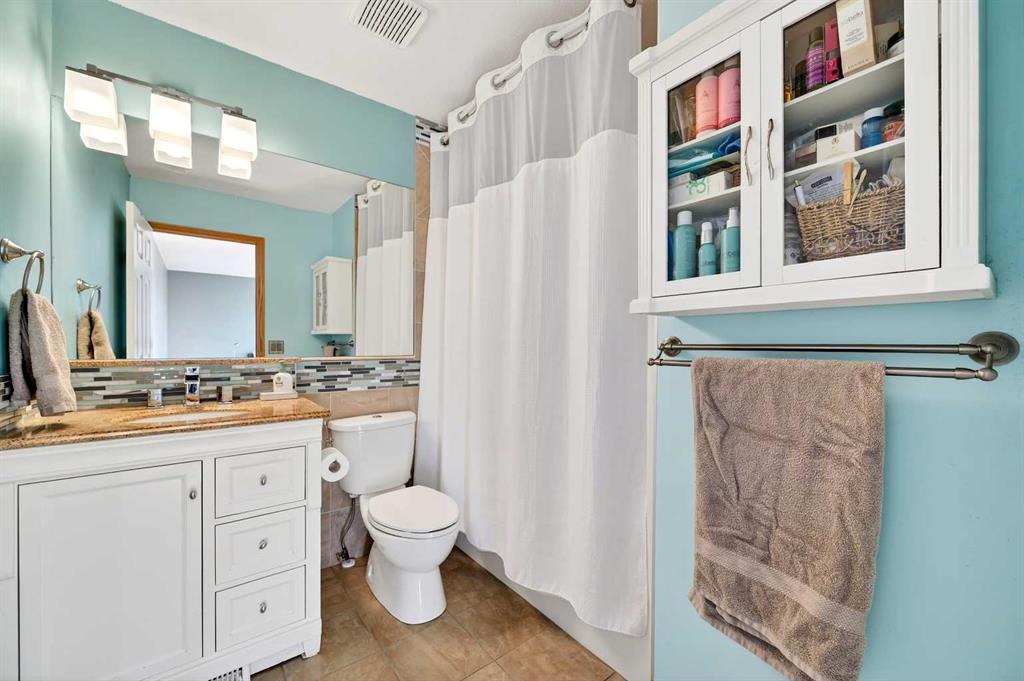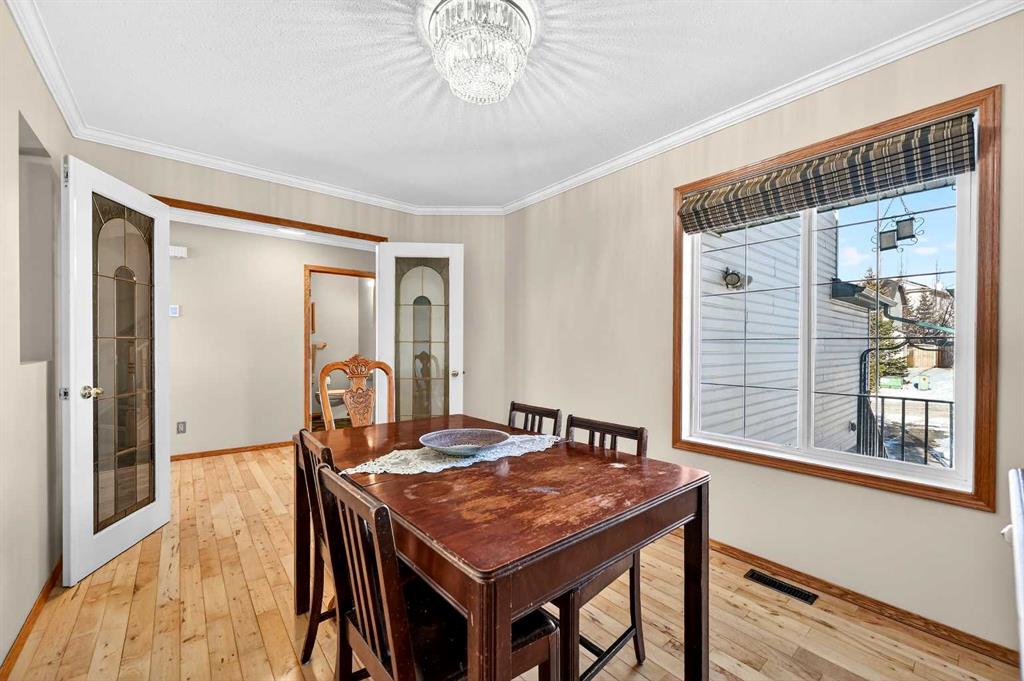 The main level flows with hardwood and tile, freshly painted for a clean, modern look, and includes a formal dining room for family meals and entertaining. The living room is centred by one of three gas fireplaces in the home, while the sun flows through the south facing windows framed by the long-range Rocky Mountain views.