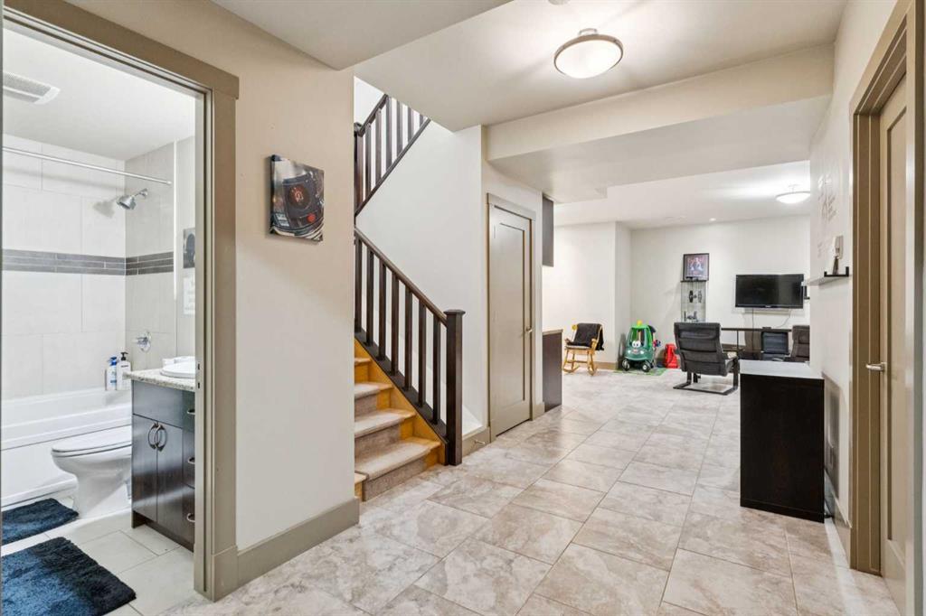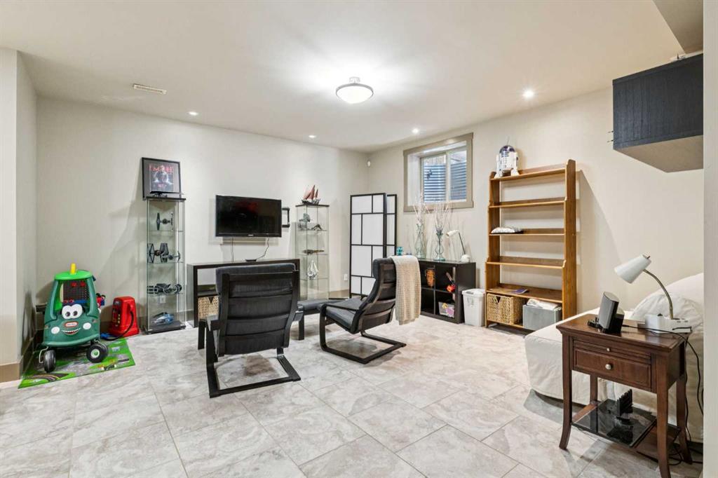The upper level includes three spacious bedrooms and a dedicated laundry room. The primary suite serves as a quiet retreat, featuring a walk-in closet and a five-piece ensuite with a steam shower. The fully developed basement is finished with durable tile and features integrated underfloor heating for efficient year-round comfort. This lower level adds a large recreation area with a side bar and beverage fridge, plus two additional bedrooms (one currently configured as a gym) and a full bathroom. Recent mechanical and exterior updates include hot water on demand, a new boiler and sump pump (2024), Gemstone lighting (2023), furnace (2020), and new shingles (2018). The low-maintenance south backyard features TREX decking and artificial turf, leading to the double detached garage. Ideally situated 100 meters from grocery stores and minutes from Kensington shopping and downtown Calgary. Book a showing, you're going to love this house!