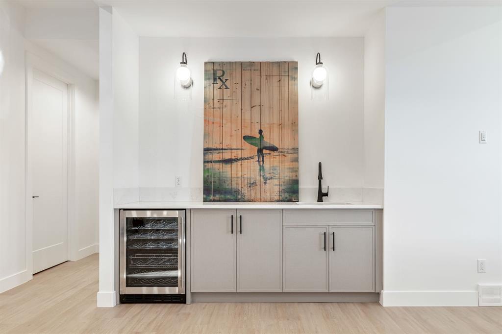 Stunning and unique best describes this modern masterpiece built by Elite Urban Concepts that draws inspirations from the wineries of California with a modern flair that checks all the boxes on one’s wish list. With over 4800 square feet of developed space and a fully finished walkout basement, there is plenty of room for a family, entertaining, working from home or relaxing on the weekends. With an open floor concept, you are immediately welcomed with hardwood floors that are complimented with the tall ceilings adorned with open beams in the living room and, tons of natural light from the abundant black cased windows. A large chef inspired kitchen that features beautiful hood fan as the centerpiece, accented with stainless-steel appliances, a separate butler pantry and, large custom wood cabinets that opens to a massive upper deck overlooking the backyard with a mountain view. Upstairs is perfect for family living with a bonus room that is central to an upper laundry room, two bedrooms and, a primary bedroom all of which have their own ensuites. Yes, you read that right, each upstairs bedroom has its own private ensuite. The primary bedroom is enormous with tons of natural light, vaulted ceilings with open beams, a view of the mountains and, a custom walk-in closet that will accommodate anyone’s needs. The beautifully crafted master ensuite features a spa like experience with large tile, wood accents, a soaker tub and a twinned shower that rivals a high-end hotel. The walkout basement is custom built for entertainment with tall ceilings accented with open beams, a custom-built stylish bar and a huge family room that has double French doors to the lower covered patio and fenced backyard, for that indoor outdoor flow. The additional open style room allows for your home gym that will take advantage of the natural light. The basement mudroom has an abundant amount of storage that leads out to the attached garage. The triple garage is large enough for your vehicles and toys. This beautiful gem in the heart of Charleswood is the perfect location, across from a park overlooked by Nose Hill Park, the location is perfect.