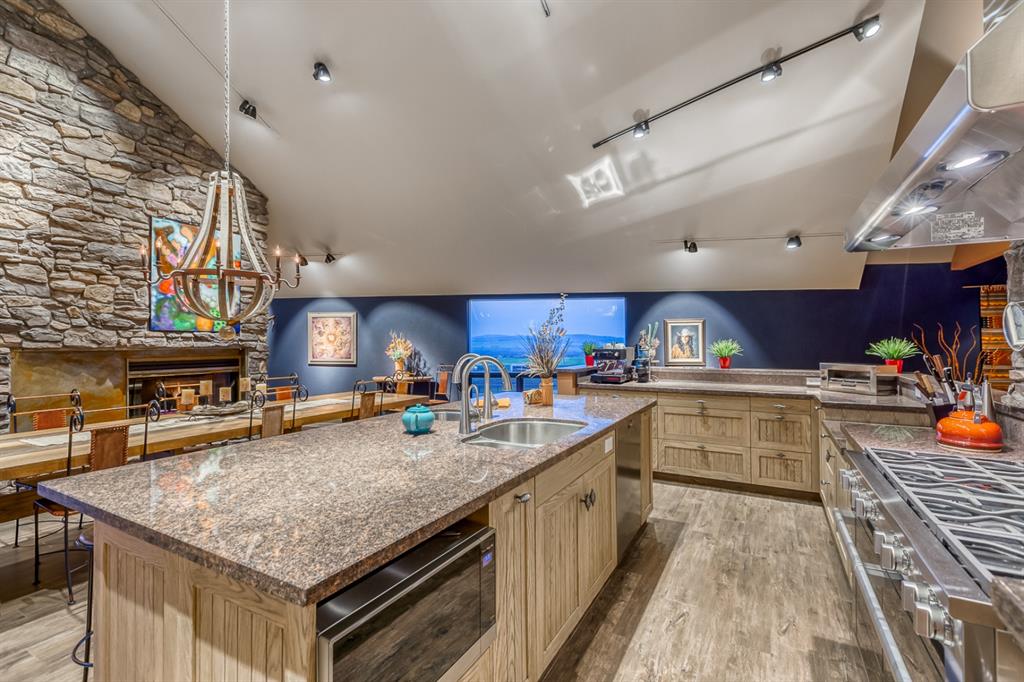 bar, breakfast bar, ceiling fan(s), central vacuum, closet organizers, double vanity, granite counters, high ceilings, kitchen island, no animal home, no smoking home, open floorplan, recessed lighting, skylight(s), smart home, soaking tub, storage, track lighting, vaulted ceiling(s), walk-in closet(s)