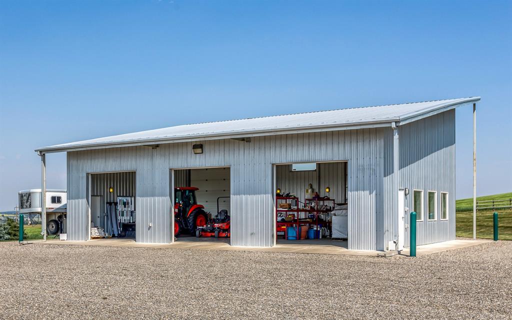 220 volt wiring, attached carport, garage door opener, garage faces front, gravel driveway, heated garage, oversized, triple garage attached