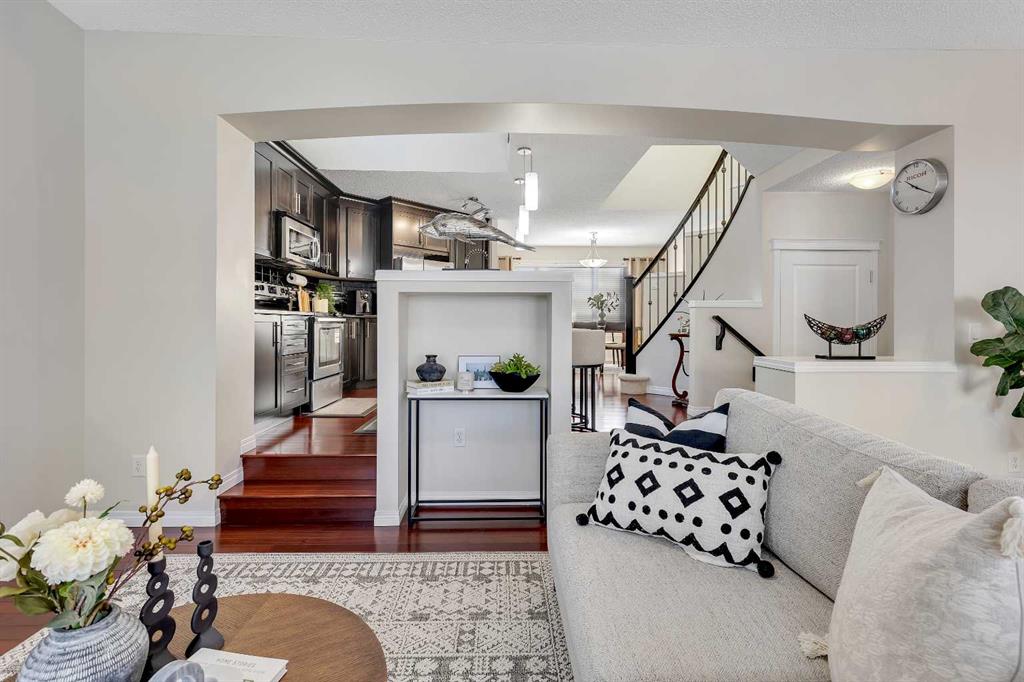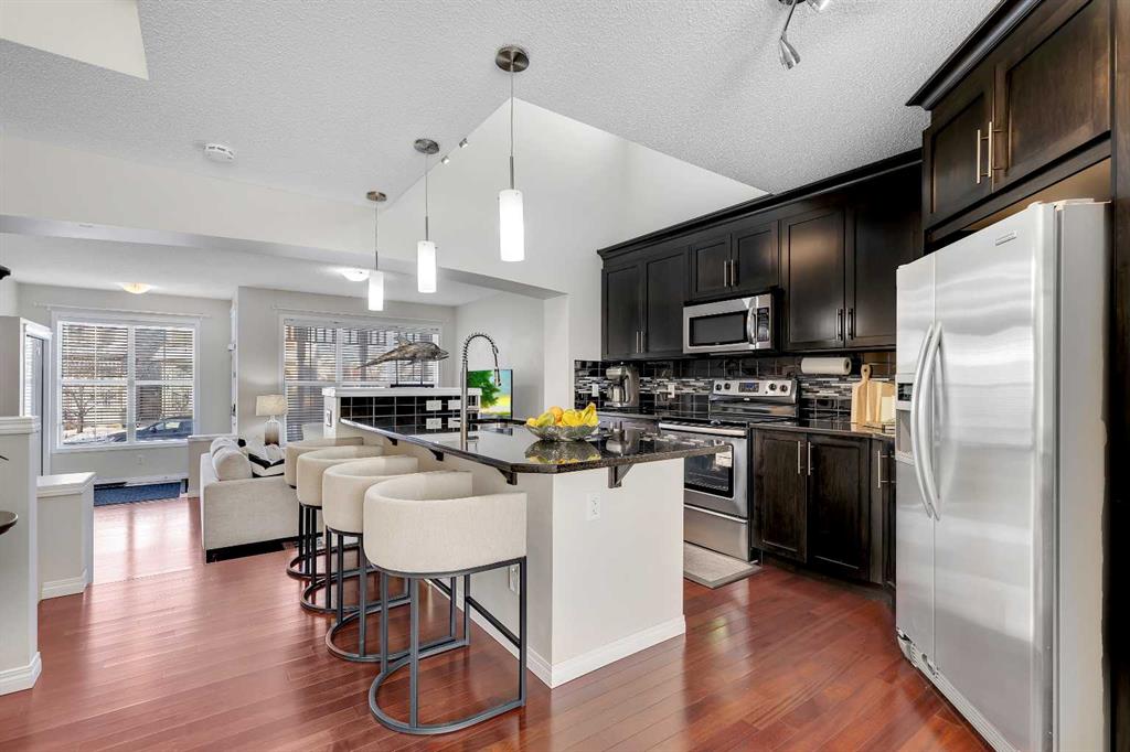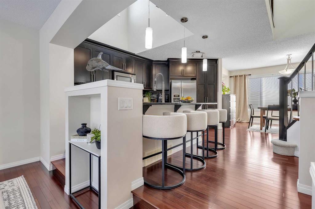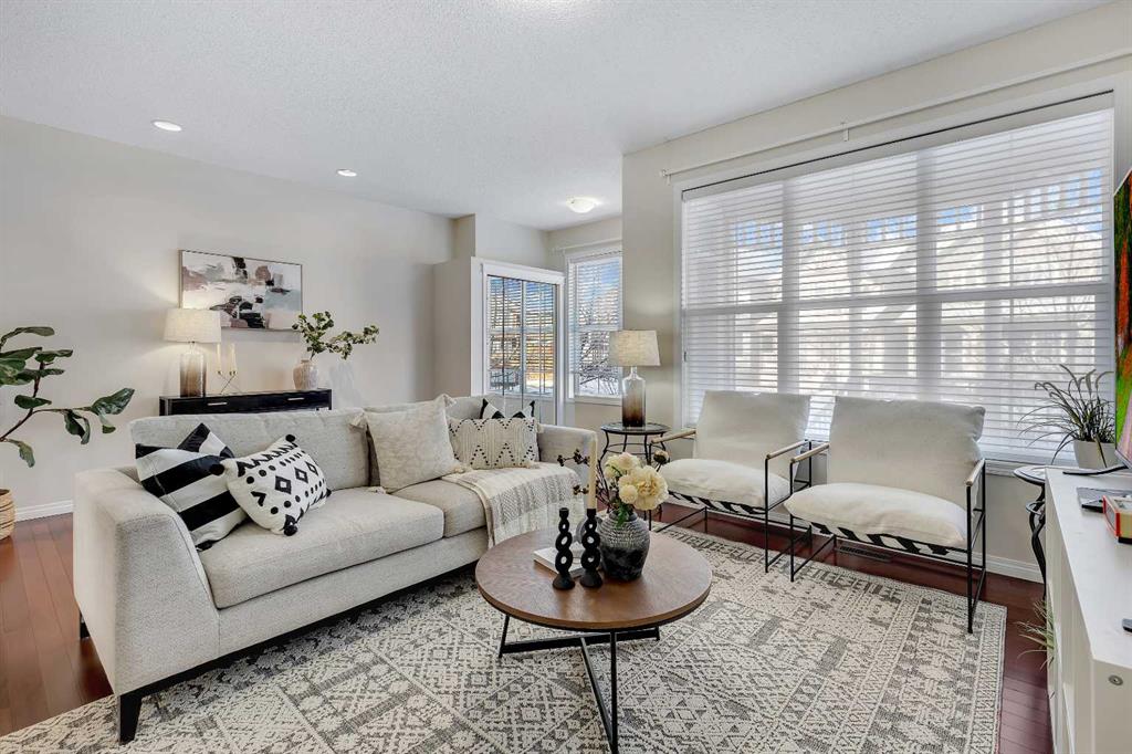 Welcome to this bright and beautifully maintained END-UNIT LANED HOME, offering comfort, functionality, and thoughtful upgrades throughout. Bathed in natural light from large windows, the OPEN CONCEPT main floor features HARDWOOD FLOORING, upgraded cabinetry, and a seamless flow that makes everyday living and entertaining effortless. The OPEN-TO-BELOW DESIGN enhances the sense of space and light, creating a welcoming atmosphere from the moment you enter.