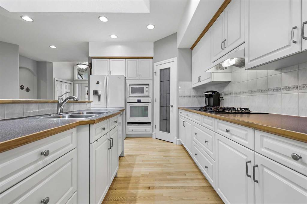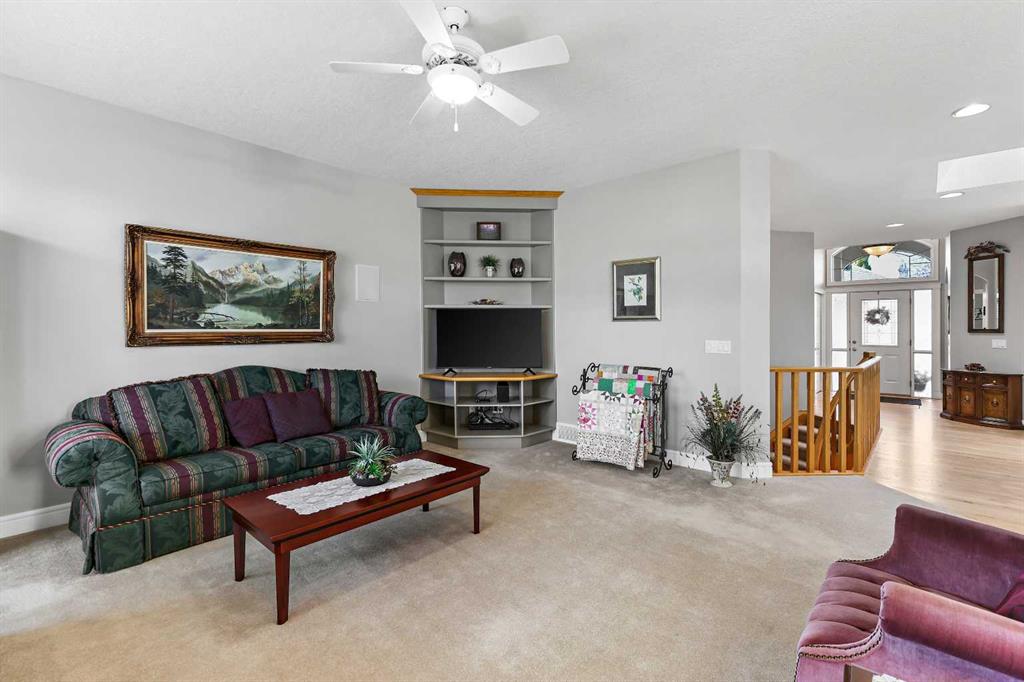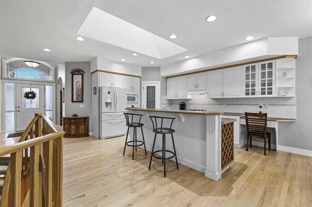 Welcome to 69 Evergreen Crescent: a well-maintained single family home with over 1,600 square feet on the main floor, a fully finished walkout basement, and direct park access. Located on a quiet street with no neighbours behind, this home offers space, updates, and everyday comfort in one of southwest Calgary’s most connected communities. Step inside to find a formal dining room just off the entry—perfect for entertaining or flexible use. The main level features hardwood floors, high ceilings, and a bright, east-facing living area that opens to a balcony overlooking the park. The kitchen, dining, and living spaces flow together for effortless daily living. Upstairs includes two bedrooms and two full bathrooms, including a generous primary suite with ensuite. Downstairs, the finished walkout basement adds two more large bedrooms, a third full bath, and a full wet bar—ideal for hosting or multi-generational living. The lower patio steps out to green space and the neighbourhood pathway system. Recent updates include replaced roof shakes, a new circuit board in the fridge, and a recent furnace service for added peace of mind. The property also features an underground sprinkler system , a double attached garage, and plenty of storage. With nearby access to Stoney Trail, Evergreen schools, shopping, transit, and walking paths, this home offers lasting value and a layout that works for families or down-sizers alike.