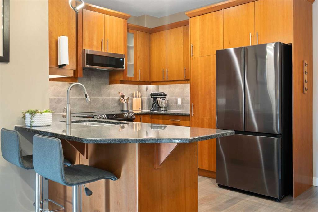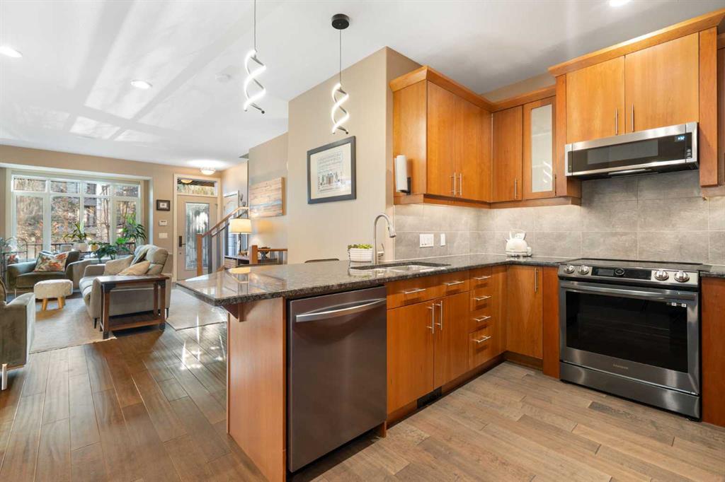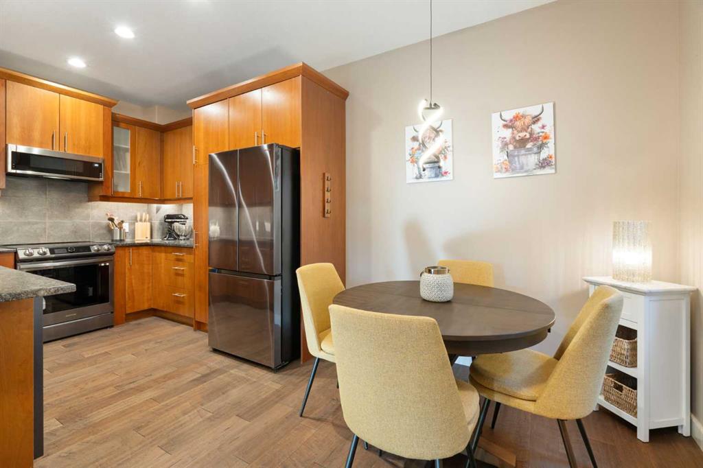 ***OPEN HOUSE Saturday & Sunday -- Noon-2pm***Located in Windsor Park, one of Calgary’s most convenient and desirable communities, this south-facing two-storey townhome is impeccably maintained and shows true pride of ownership throughout. The home has been carefully cared for and features a number of well-chosen upgrades. The bright main level features 9-foot ceilings, a sun-filled living room with east and south-facing windows, rich hardwood flooring, and a cozy inset fireplace. The open-concept layout flows effortlessly into the dining area and well-appointed kitchen—spotless, functional, and ideal for both everyday living and entertaining. New kitchen appliances were installed in 2024, including energy-efficient, smart Samsung appliances (fridge, dishwasher, and stove). The stove features an induction cooktop and a convection oven with a steam-cleaning function, while a Whirlpool microwave completes the newer appliance package. A convenient powder room adds to the functionality of the main level. Upstairs, the home offers two spacious bedrooms, each with its own 4-piece ensuite, all maintained in immaculate condition. The primary bedroom is a comfortable retreat, featuring a cozy electric fireplace and a well-appointed ensuite with a skylight, spacious vanity, large soaker tub, and separate shower. A convenient upper-level stacked washer and dryer adds everyday practicality. The recently completed basement extends the living space and includes a rec room with wet bar and refrigerator, ideal for relaxing or entertaining. A barn door provides stylish access to the utility and storage room. Additional features and upgrades include custom blinds installed in 2023, with thermal blinds in the primary bedroom and motorized blinds in the living room, central air conditioning (2023), R60 blown-in attic insulation (2024), and a smart thermostat—all contributing to the home’s comfort, efficiency, and excellent condition. A separate side entrance off the kitchen makes bringing in groceries easy and provides convenient access to the detached garage with assigned parking. Additional street parking in front of the home is easy and convenient. Outside, the pride of ownership continues with one of the most charming and well-kept yards on the street, featuring a covered front porch and an additional patio space, ideal for enjoying summer days. Ideally located with quick transit to downtown, easy access to Glenmore Trail, walking distance to Chinook Centre, and minutes from the trendy Britannia Plaza Shopping Centre, as well as parks, schools, and everyday amenities, this beautifully maintained home is perfect for professionals or families seeking comfort, quality, and an unbeatable location.