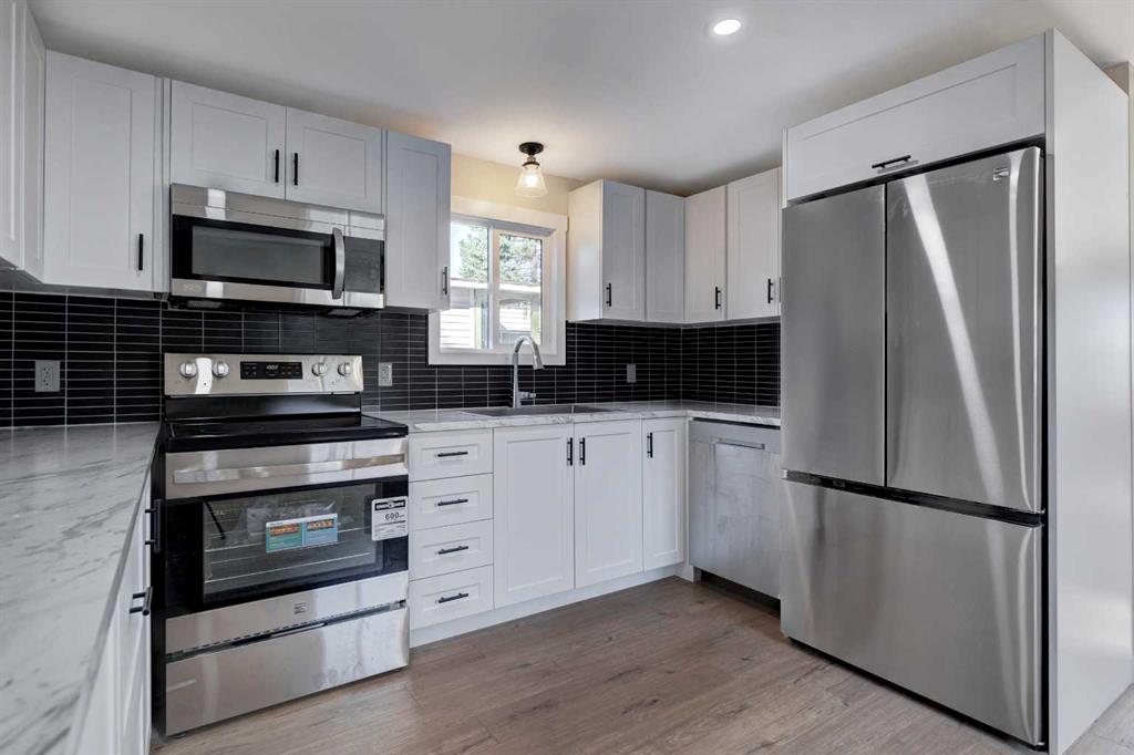 Don’t wait to view this property - you won’t be disappointed! Fully renovated 2 bed, 2 bath mobile home in the conveniently located Mountview Mobile Home Park. FULLY RENOVATED WITH ALL OF THE BIG TICKET ITEMS DONE! WINDOWS, FURNACE and newer HWT, NEW PEX WATERLINES (installed in-floor), KITCHEN, BATHROOMS, DOORS, BASE AND CASE, SIDING, SKIRTING, DECKS, DRYWALL THROUGHOUT, FLAT PAINTED CEILING. This home has a great layout with a large, sunny living room, spacious kitchen with brand new kitchen cupboards, new modern laminate countertops, pot lights, tiled backsplash, new stainless steel appliances and a good size eating area. You will find Laminate flooring throughout with Vinyl plank in the bathrooms. The home is painted in a modern color palette designed to suit any decor, has new lighting throughout, a spacious hallway leading to the large 4-pce bath with new tub, toilet and vanity. A redesigned floor plan includes a separate laundry area and a 3 piece bath with a storage cabinet, toilet and vanity, along with a stacked washer and dryer. The large living brings in lots of light.