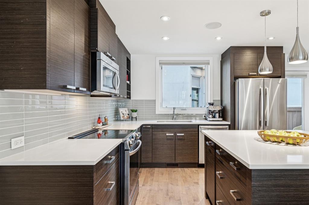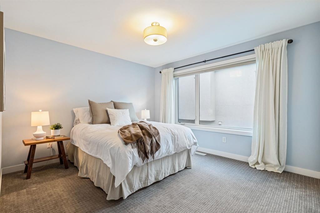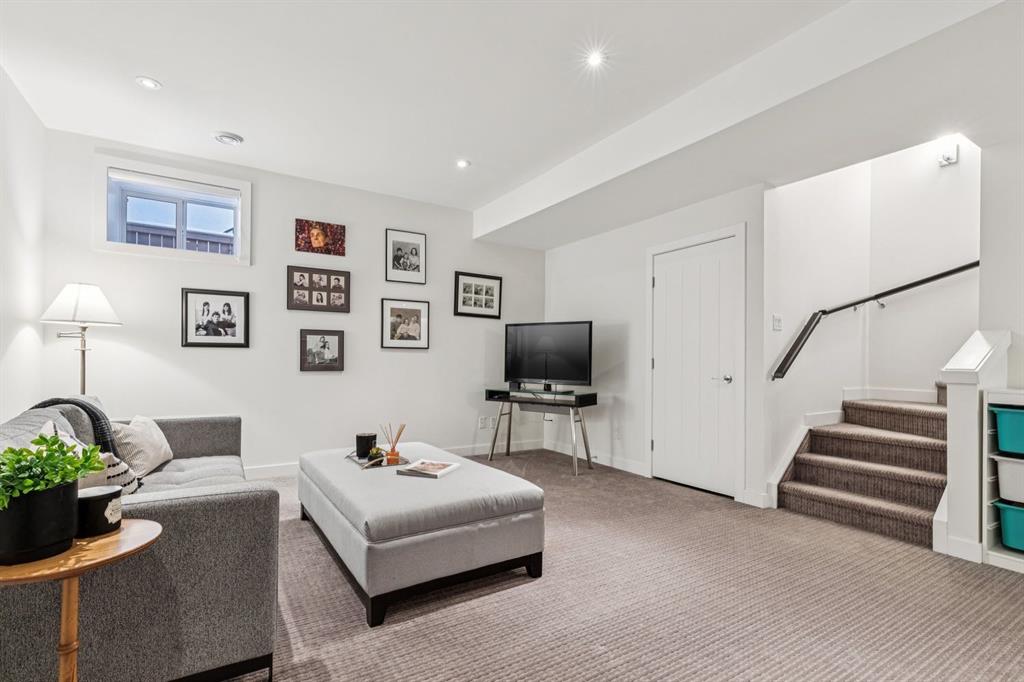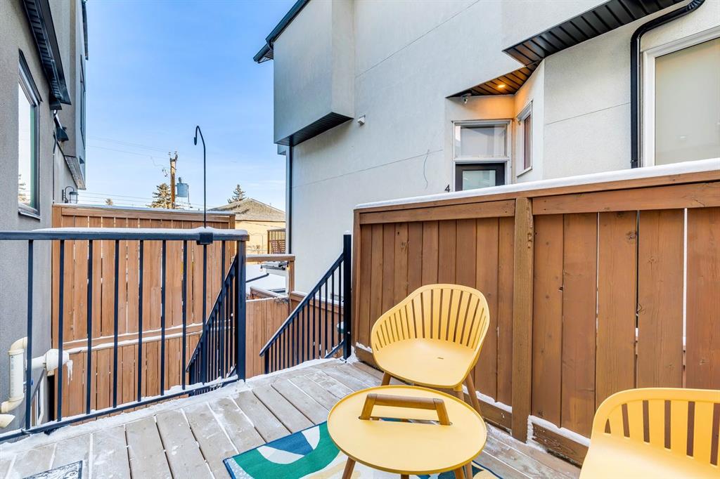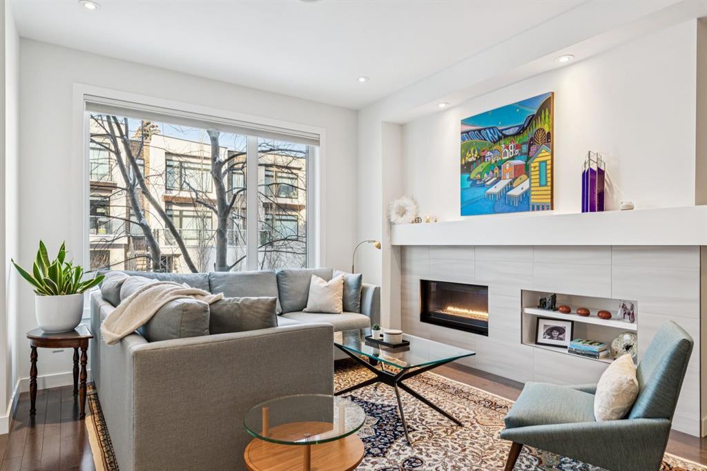 Don't miss out on this incredible opportunity for a gorgeous townhome in a walkable location in Marda Loop! One block away from Our Daily Brett, cSpace, the Marda Loop Community Centre & library and just a few blocks from favourites like DOPO and Marda Loop Brewing (not to mention River Park!), this modern home is in the action while still being on a quiet street. The main level is warm and inviting with an open floor plan, tiled gas fireplace with custom art niche, full-sized dining area and a kitchen made for entertaining with central island! Enjoy soft-close cabinets, garbage pull-out, window above the sink, wine racking, quartz counters and modern stacked tiling. Easy access to the back deck is perfect for summer BBQs (gas line in place) or a sunny morning coffee. The oversized pantry and powder room round out this level. Upstairs, enjoy lovely natural light and two generously sized bedrooms, each with their own ensuite bath. Laundry and linen closet on this level are so convenient! The primary ensuite bath is made for indulging, with in-floor heat, steam shower, body jets, double sinks and so much storage! Walk-in closet has custom MDF shelving and the bedroom itself has plenty of space for any size of bedroom furniture. Second bedroom is generously sized and has full bath with a tub. The lower level is the place to lounge, with a large rec room ready for movie nights or having your friends over for the big game. Third bedroom with large west-facing window, full bathroom, storage and mechanical complete the picture, including new water softener (2021) and hot water tank (2022). This self-managed complex is pet-friendly and has amazing neighbours! This home is a sanctuary, somewhere you can be proud to call your own.