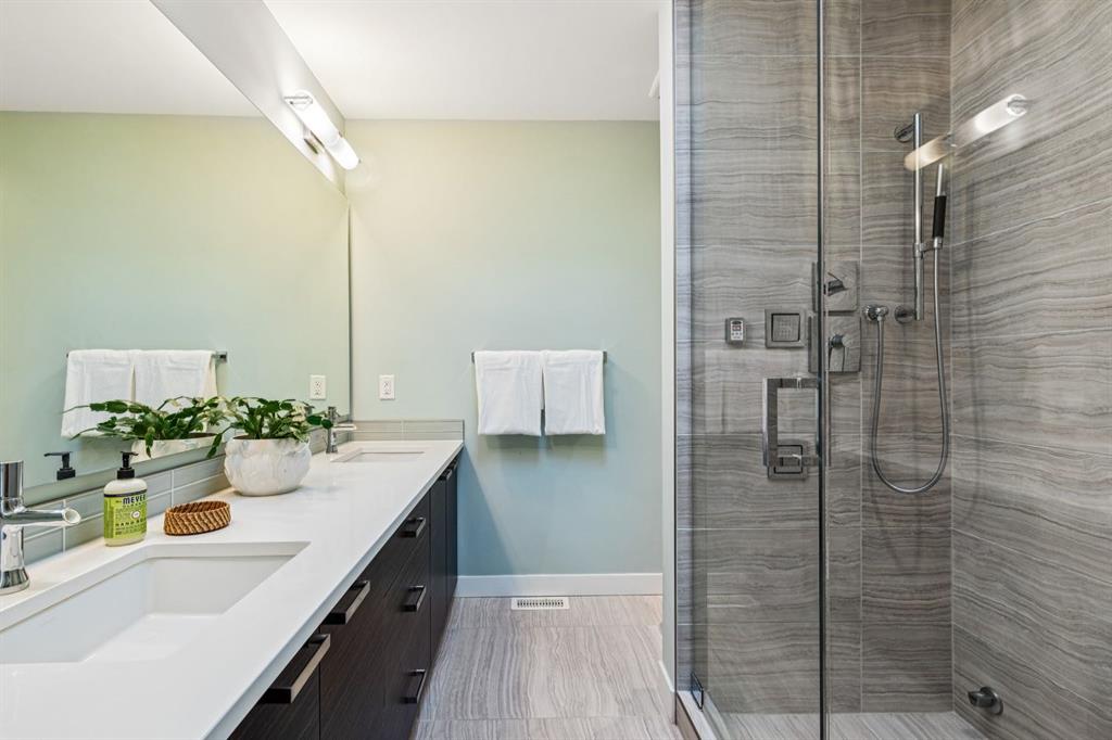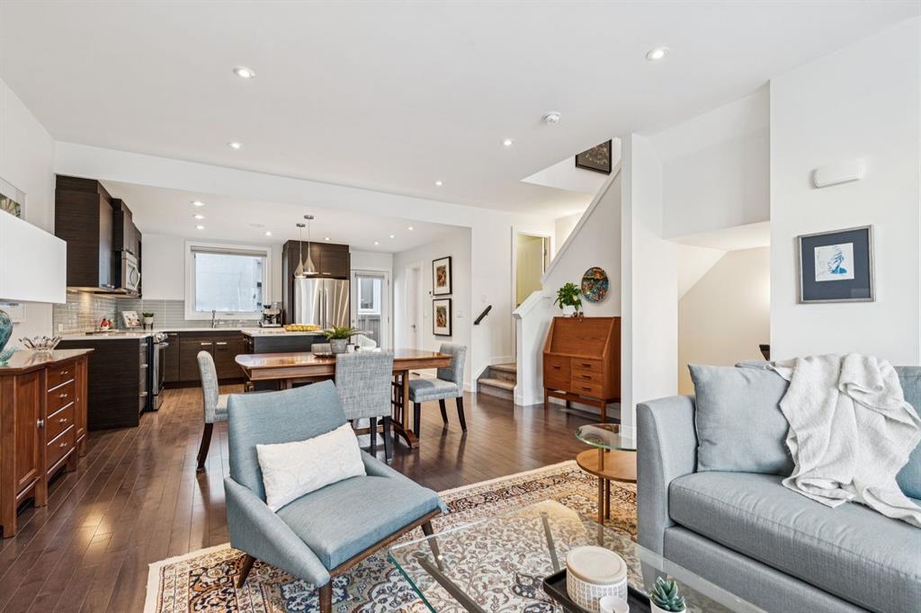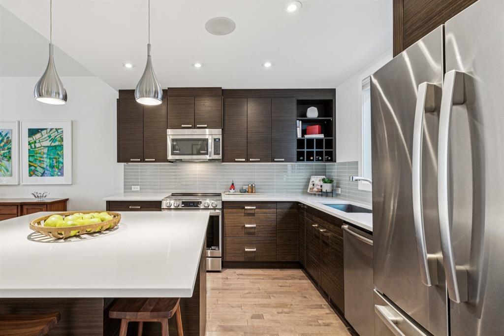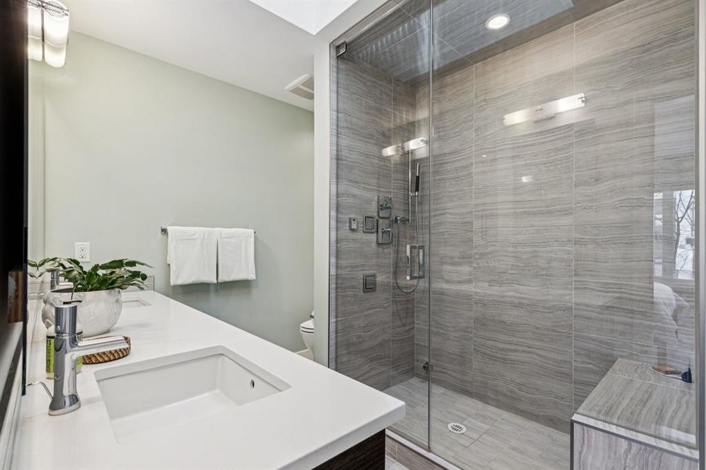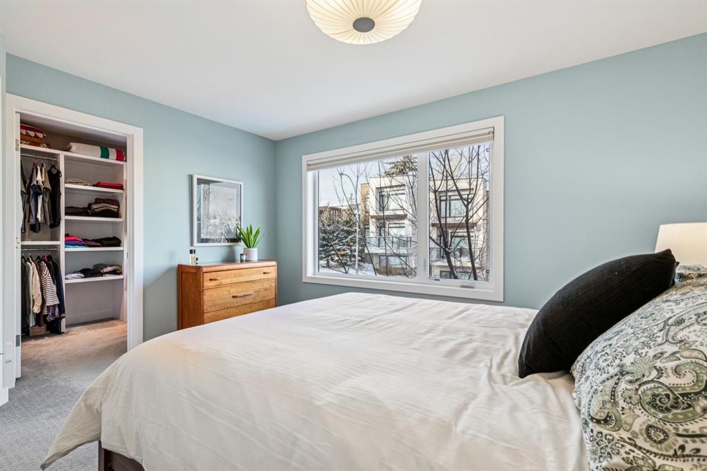 Don't miss out on this incredible opportunity for a gorgeous townhome in a walkable location in Marda Loop! One block away from Our Daily Brett, cSpace, the Marda Loop Community Centre & library and just a few blocks from favourites like DOPO and Marda Loop Brewing (not to mention River Park!), this modern home is in the action while still being on a quiet street. The main level is warm and inviting with an open floor plan, tiled gas fireplace with custom art niche, full-sized dining area and a kitchen made for entertaining with central island! Enjoy soft-close cabinets, garbage pull-out, window above the sink, wine racking, quartz counters and modern stacked tiling. Easy access to the back deck is perfect for summer BBQs (gas line in place) or a sunny morning coffee. The oversized pantry and powder room round out this level. Upstairs, enjoy lovely natural light and two generously sized bedrooms, each with their own ensuite bath. Laundry and linen closet on this level are so convenient! The primary ensuite bath is made for indulging, with in-floor heat, steam shower, body jets, double sinks and so much storage! Walk-in closet has custom MDF shelving and the bedroom itself has plenty of space for any size of bedroom furniture. Second bedroom is generously sized and has full bath with a tub. The lower level is the place to lounge, with a large rec room ready for movie nights or having your friends over for the big game. Third bedroom with large west-facing window, full bathroom, storage and mechanical complete the picture, including new water softener (2021) and hot water tank (2022). This self-managed complex is pet-friendly and has amazing neighbours! This home is a sanctuary, somewhere you can be proud to call your own.