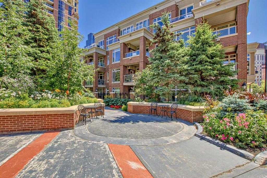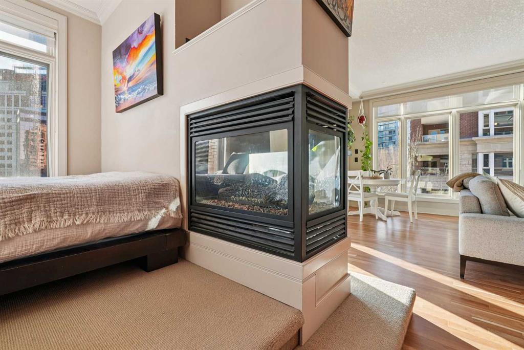 Luxurious upscale studio apartment condo in the prestigious Princeton Cityscape! Exceptional bright southwest corner location with large south and west windows providing plenty of natural light while enhancing the city views. Open concept with high ceilings, hardwood floors, granite counter tops, stainless steel appliances, gas stove, new fridge & dishwasher, built-in vacuum system, 3 sided gas fireplace, 5 built-in speakers, subwoofer and components, large south-facing covered balcony, balcony has rough-in for speakers, spacious 3 pce bathroom with large shower stall, in-suite laundry with stacked washer/dryer and large closet with built-in organizers. Comes with central air conditioning, in-floor heating, secure underground titled parking and storage locker, inner courtyard, visitor parking, underground carwash bay and recently renovated common areas. Extraordinary Heart of Eau Claire location nestled along the south bank of the Bow River next to beautiful Prince's Island Park and the World-Class Pathway System! Close to great restaurants and Cafe's, fine dining, plus 15 skywalk system, transportation & LRT, Peace Bridge and just a short walk to Kensington Shops, Safeway and Calgary's vibrant City Center. Amazing opportunity to call this prestigious building your home while living the ultimate downtown urban lifestyle!