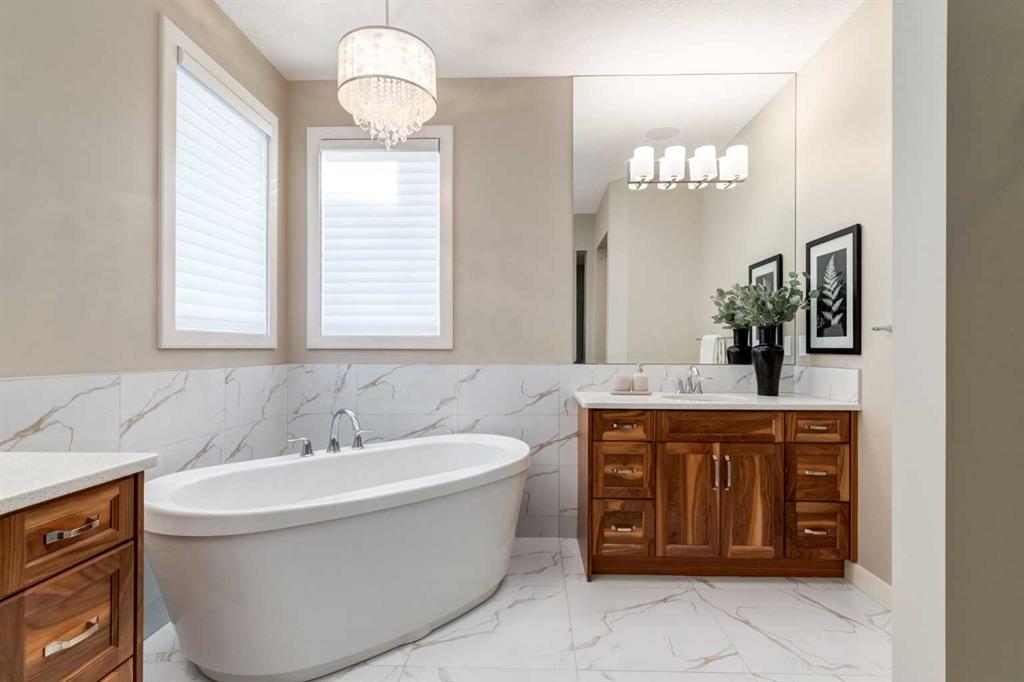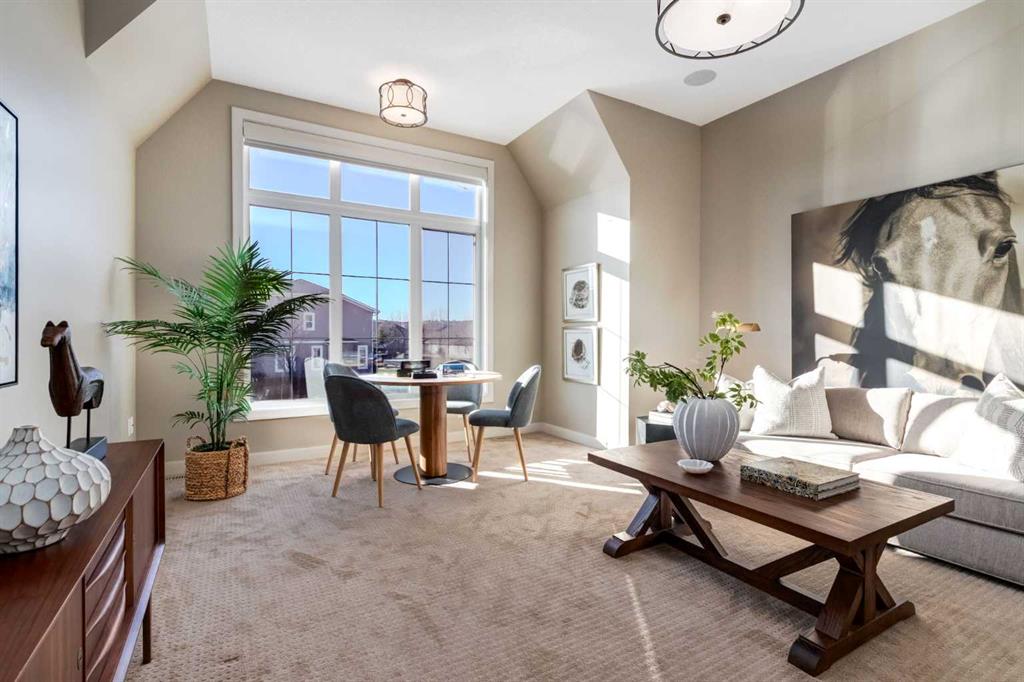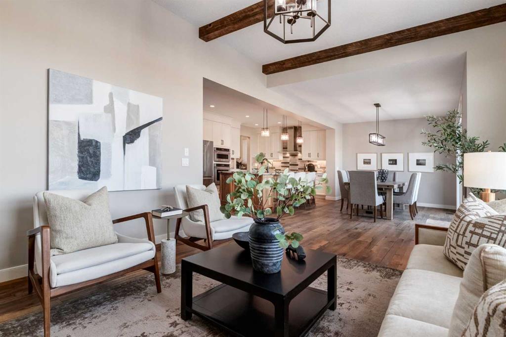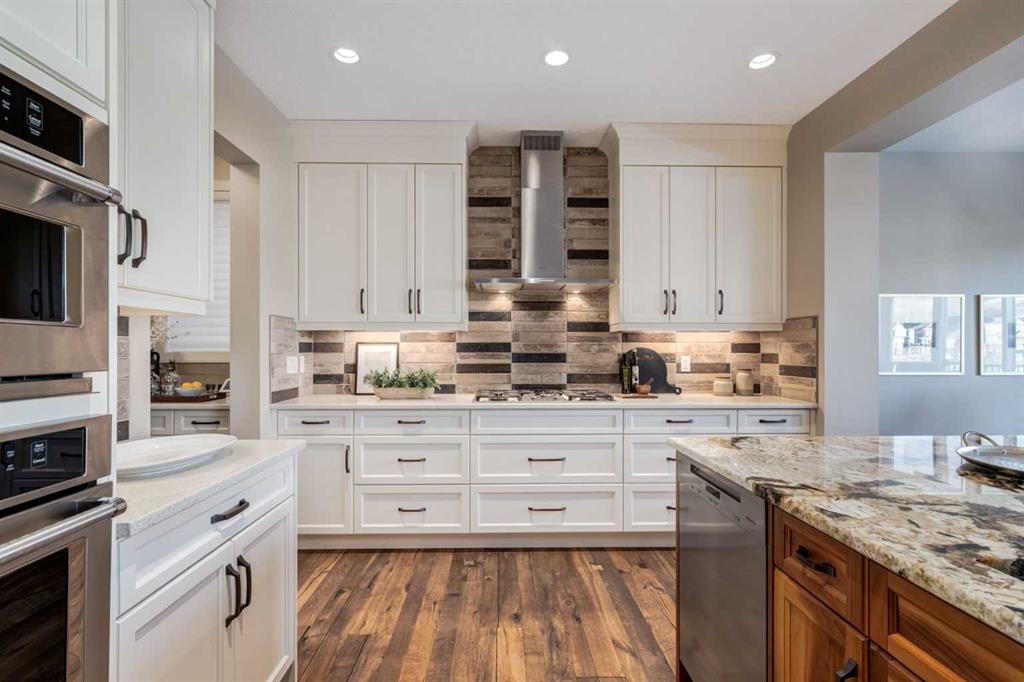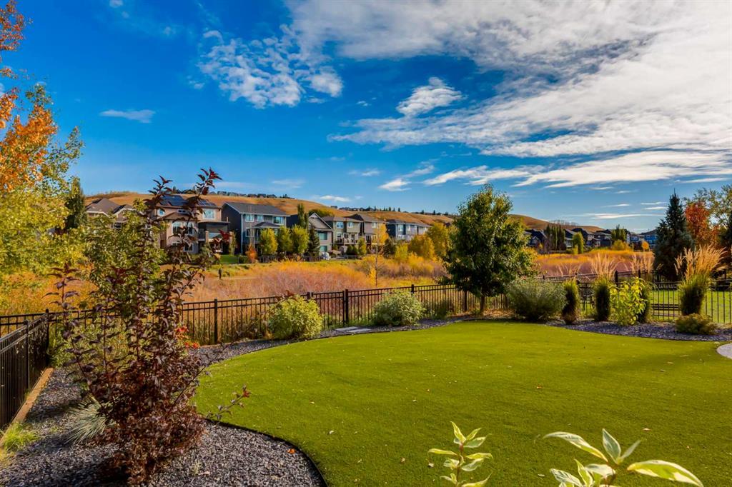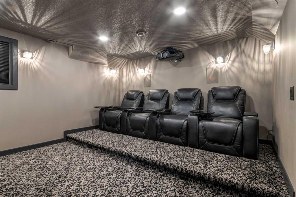 Understated luxury and style describe this incredible executive home situated within steps to the Bow River and miles of pathway systems thru Fish Creek. Offering 3,751 SF of developed living space with 4+1 bedrooms, 3.5 bathrooms, triple attached garage and walkout basement. You are welcomed into a large, tile foyer to the bright and open main floor where you will find rustic hardwood flooring throughout, high ceilings highlighted by wood beams that adorn the living room with a majestic gas fireplace where you can enjoy backyard views and a spacious dining area allowing ample room to host family and friends. The Chef's kitchen is centrally located and the heart of the home showcasing custom maple cabinetry, an oversized island with breakfast bar, granite & quartz countertops, undercabinet lighting, walk-in pantry, butlers pantry and top of the line stainless steel appliances including gas range. A mud room with built-ins, home office and 2 piece bathroom complete this space. The upper level hosts a bonus room, primary bedroom featuring a vaulted ceiling, private sitting area, walk-in closet with extensive built-ins and a spa-like 5 piece ensuite with dual vanities, stand alone soaker tub and a separate shower. A conveniently located laundry room and 3 additional bedrooms which share a 4 piece bathroom area also found on this level. The walkout basement is sure to impress with a family room with full service wet bar, a theater room with built in speakers, two-tiered flooring, Lutron lighting and custom carpet, 5th bedroom, 3-piece bathroom and loads of storage space. The low-maintenance backyard, with synthetic grass, backs onto a ravine and provides year around enjoyment with a hot tub on the expansive aggregate patio surrounded by remote control power privacy screens. Further notable features include central ac (x2), Hunter Douglas Silhouette automated blinds, central vacuum system on all levels, built-in speakers on all levels, hot water on demand, touch faucets in the kitchen and bar, underground irrigation system, gem stone exterior lights and the over-sized garage with a dog wash, slat wall motorized lift and can fit a 1-tonne truck. Often referred to as 'Calgary’s best-kept secret', this premier estate community is conveniently located just minutes from South Health Campus, Seton YMCA, numerous schools, restaurants, shopping centers, and more. Schedule your showing today and discover everything this stunning home and thriving community have to offer!