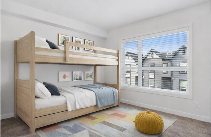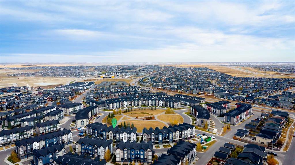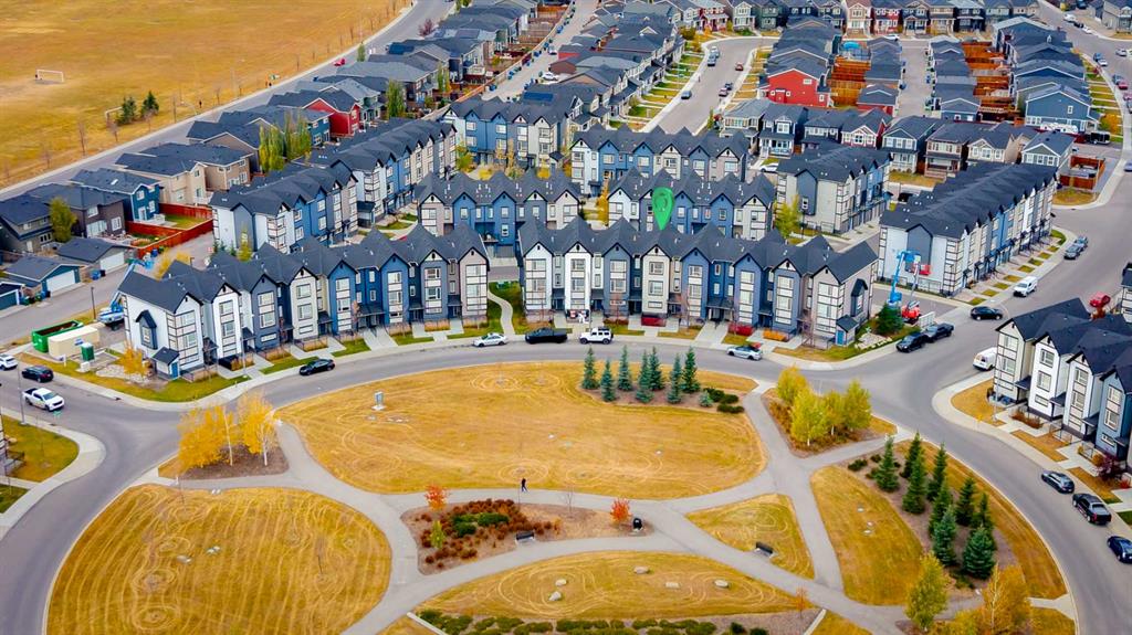 Welcome to this beautifully designed 3 bedroom, 2.5 bathroom townhouse, ideally located in the sought-after community of Evanston in NW Calgary. Perfectly positioned facing a picturesque circular park, this home offers a blend of thoughtful layout, modern finishes, and everyday convenience. The entry level welcomes you with a spacious foyer featuring direct access to the finished double tandem garage, finished with durable epoxy flooring and including dedicated utility and storage areas, providing both function and organization. From here, step outside to enjoy a private ground-level patio, ideal for relaxing, gardening, or entertaining. Additional parking available on the single driveway, ample visitor parking as well as convenient street parking in front of the home. Upstairs, the main living level showcases an open-concept design that seamlessly connects the living room, dining area, and kitchen. The centrally located kitchen is the heart of the home, anchored by a large quartz island and complemented by abundant cabinetry, multiple pantry spaces, and stainless steel appliances. On one side of the kitchen, the bright and inviting living room features large windows that flood the space with natural light and provide access to a balcony, perfect for morning coffee or evening downtime. On the opposite side, the dining area offers plenty of room for hosting family dinners or gatherings with friends. A convenient 2-piece powder room completes this level. The upper floor is thoughtfully arranged to maximize privacy and comfort. The primary suite is situated at one end and features a walk-in closet and a private 3-piece ensuite. On the other end, two additional well-sized bedrooms - one with a walk-in closet—share a full 4-piece bathroom. A convenient upstairs laundry area adds to the practicality of the layout, making daily routines effortless. Additional features include air conditioning for year-round comfort and a location that truly sets this home apart. Enjoy walking-distance access to Evanston’s shopping, schools, and nearby soccer fields, along with quick and easy connections to Stoney Trail for commuting around the city. This move-in-ready townhouse offers a rare combination of park-facing views, modern finishes, and an unbeatable location - an excellent opportunity to call Evanston home.