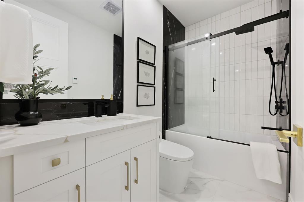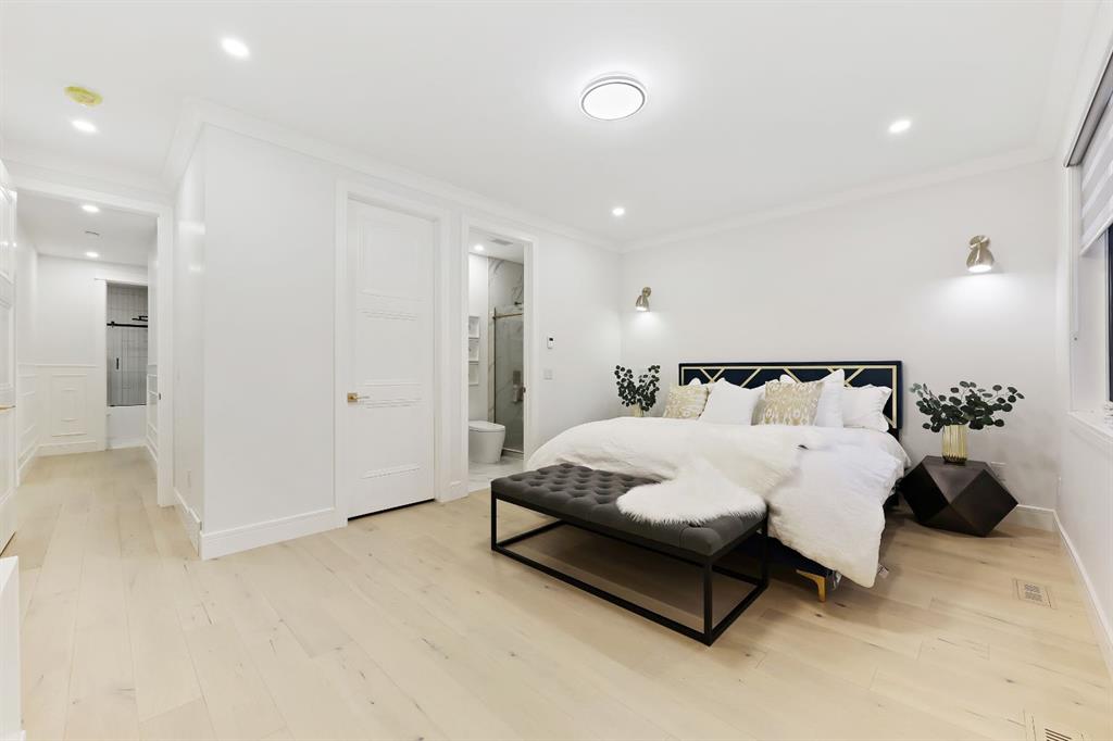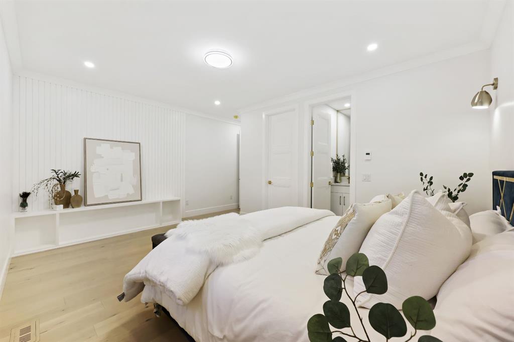 This Modern Art Piece, an exceptional custom-built luxury home located in the heart of Brentwood. Meticulously constructed by the builder as a Modern Master Piece, this home reflects uncompromising craftsmanship, premium materials, and thoughtful design throughout. Offering 7 bedrooms, 5.5 bathrooms, and over 3,600 sq. ft. of well designed living space, plus a fully developed legal basement suite with a private, separate walk-up entrance, This property delivers outstanding versatility and value. The striking contemporary exterior, showcases contemporary brick and Hardie Board finishes, enhanced by professional landscaping and elegant exterior accent lighting. Step inside to be greeted by a dramatic 19-foot ceiling in the main living room with an open-to-below second-storey design, creating a bright and expansive atmosphere. The grand living space is anchored by a custom gas fireplace with stone façade, seamlessly flowing into the gourmet kitchen, with an expensive 10-foot quartz waterfall island which serves as the centre piece perfect for entertaining, complemented by top-of-the-line Jen Air appliances and refined finishes. Adjacent to the kitchen is a stylish dining nook with custom wall paneling, while a thoughtfully designed bar offers an ideal space for evening hangouts or serving guests. A private back entry leads to a functional mudroom. The main floor also features a bedroom with its own 3-piece ensuite, ideal to entertain guests, or for extended family needs, along with another 2-piece designer powder room. Upstairs, enjoy an open bonus room overlooking the living area, framed with modern glass railings, The upper level boasts two luxurious primary bedrooms, each with spa-inspired en-suites featuring floor-to-ceiling ceramic tile, in-floor heating, and premium lavatories throughout. one with steam shower, and a free standing soaker tub, The fully developed basement with 9ft ceiling, includes a legal suite with two bedrooms, a full bathroom, a kitchen with shaker-style cabinetry, complete appliance package, and its own full-sized washer and dryer, The other portion of the basement offers roughed-in plumbing, ready for Customization to suit your lifestyle needs. The home is equipped with three separate furnaces, providing efficient climate control for each level. The backyard features two single-car garages, along with a finished lawn to complete the outdoor space.The location is truly unbeatable—just steps from Brentwood LRT Station, Brentwood Village, Northland Mall, and K–12 schools. The University of Calgary is only minutes away, and quick access to Crowchild Trail ensures effortless commuting while remaining tucked away ,completely peaceful and quite, An outstanding property with exceptional build quality, modern luxury, and an unbeatable lifestyle in one of Calgary’s most sought-after communities.