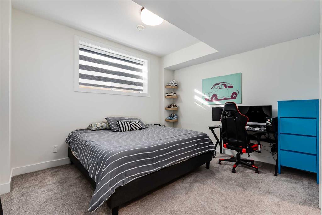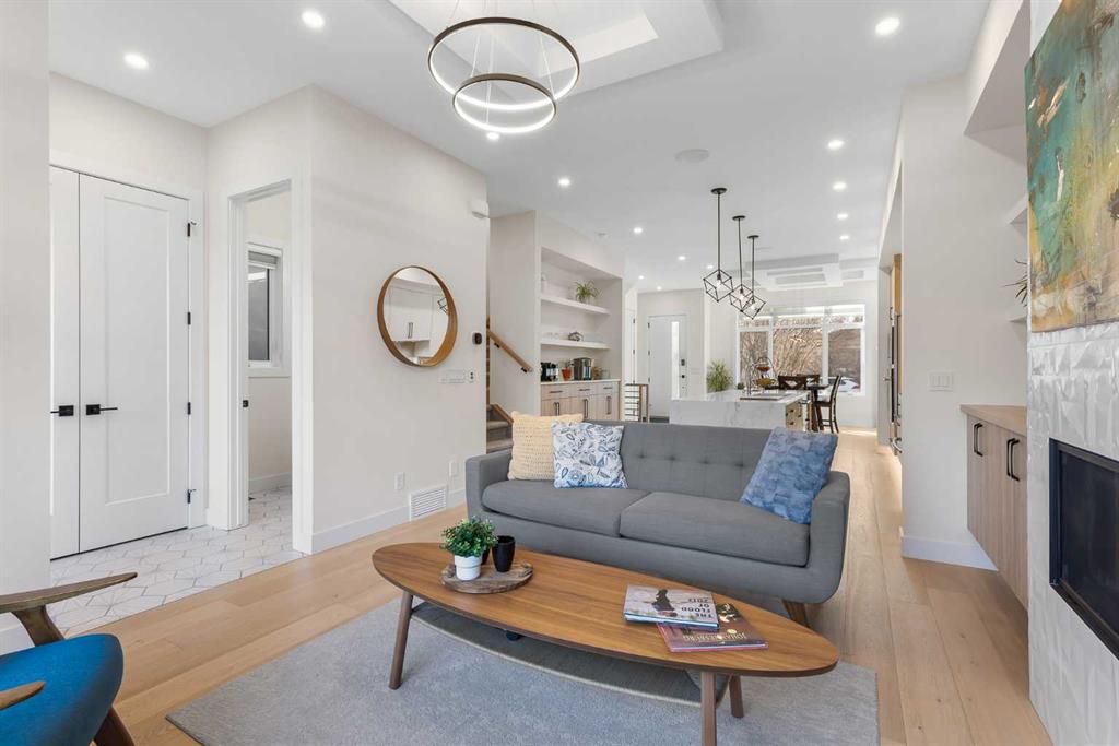 Located on one of the most desirable streets in Banff Trail, this custom-built two-storey home, offers over 2,700 sq ft of thoughtfully developed living space. Over $120,000 in after-market upgrades have been added. Designed with attention to detail and quality craftsmanship throughout, the home combines a functional layout with a clean, contemporary aesthetic in an exceptional inner-city location. The main floor opens to a spacious entryway with 10ft ceilings and 8ft doors. Exquisite tile work, wide plank white oak hardwood flooring, and carefully selected lighting add visual interest. Large windows bring in abundant natural light, enhancing the open concept kitchen, living, and dining areas. The dining room features a coffered ceiling, while the living room is anchored by a cozy natural gas fireplace with built-in shelving. The kitchen is designed for both everyday living and entertaining, offering two-tone cabinetry, quartz countertops, a large waterfall island with seating, stainless steel appliances including a gas cooktop and built-in wall oven, ample storage, a pantry, a built-in coffee bar area, and instant hot water. Air conditioning provides added comfort during warmer months. A two-piece powder room and a well-organized mudroom with built-in bench seating and hooks complete the main level. Upstairs, 9ft ceilings and plush carpet flooring create a comfortable transition to the private living spaces. The primary retreat is generously sized and includes a walk-in closet with custom built-in shelving and a well-appointed five-piece ensuite. Heated floors, a soaker tub, dual sinks, and an oversized glass-enclosed shower with rain showerhead and bench create a spa-like atmosphere. Two additional bedrooms are located on this level, one of which features an impressive 13-foot ceiling. A five-piece bathroom with dual sinks and a tub/shower combination serves the upper floor, along with a conveniently located laundry room. The fully developed basement adds valuable living space and also benefits from 9ft ceilings. It includes a large rec room with a wet bar, making it ideal for movie nights or entertaining, along with a fourth bedroom featuring a walk-in closet, a four-piece bathroom, and a dedicated storage and utility room. Outside, the low-maintenance backyard is designed for easy enjoyment, featuring concrete surfaces, mature trees, and a gazebo. A small deck provides the perfect spot for a BBQ. The double detached garage is insulated and drywalled, equipped with 200-amp service, two electric vehicle charging outlets (one 30-amp and one 50-amp). The home includes a SolarEdge solar power system. Banff Trail is known for its walkability and access to amenities, with Confederation Park just steps away offering pathways, playgrounds, a pump track, splash park, golf course, and more. Schools, transit, and major routes such as Crowchild Trail are nearby, while the U of C, SAIT, hospitals, shopping centres, Nose Hill Park, and downtown are all within minutes.