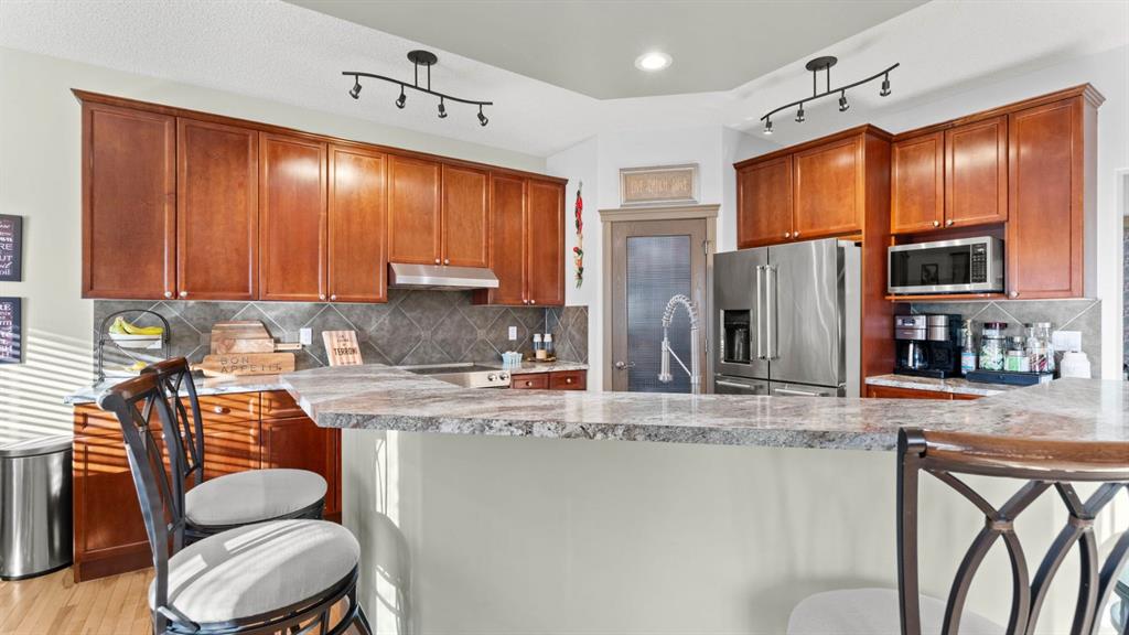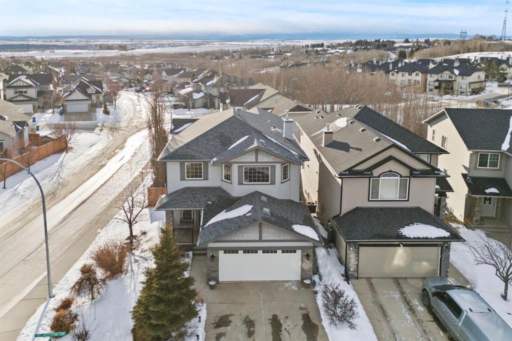 Welcome to this beautifully maintained two-storey home, ideally situated on a desirable corner lot in the highly sought-after community of Rocky Ridge. Offering 2,420 sq ft of above-grade living space plus an additional 1,113 sq ft in the fully developed walkout basement, this home delivers exceptional space, comfort, and versatility for today’s modern family. The main level features a bright and open-concept layout with rich hardwood flooring and large windows that flood the home with natural light. The spacious living room is anchored by a cozy fireplace with custom surround and built-in niches, creating a warm and inviting focal point. Adjacent is a generously sized dining area, perfect for hosting family gatherings and entertaining guests. At the heart of the home is the thoughtfully designed kitchen, showcasing a huge central island, stainless steel appliances, and ample cabinetry. A walk-through corner pantry offers seamless flow to the mudroom and garage, while the sunny breakfast nook provides the perfect spot for casual meals and everyday living. A convenient main-floor laundry room and a stylish powder room complete this level with functionality and flair. Upstairs, you’ll find three spacious bedrooms, including a beautiful primary retreat designed for relaxation. The primary bedroom features large windows, soft natural light, and a tranquil atmosphere, complemented by a luxurious ensuite with dual vanities, a jetted tub, and a separate shower — your own private spa-like escape. The additional bedrooms are well-sized and versatile, ideal for children, guests, or a home office.