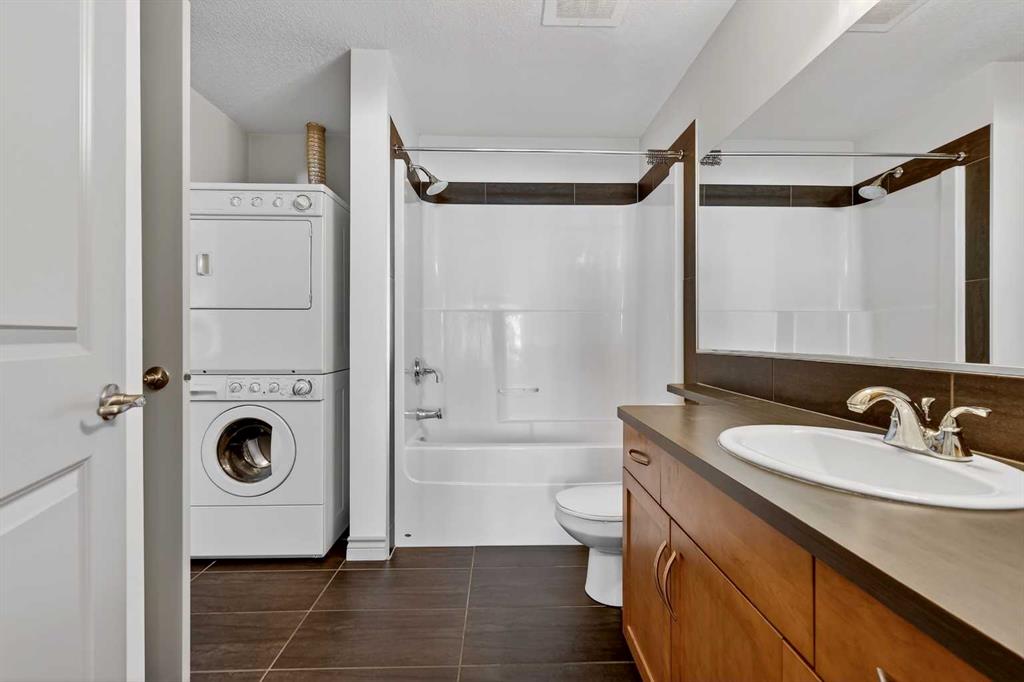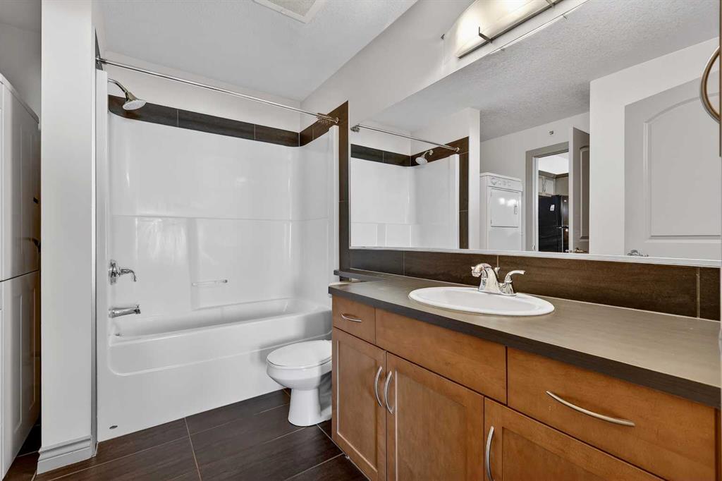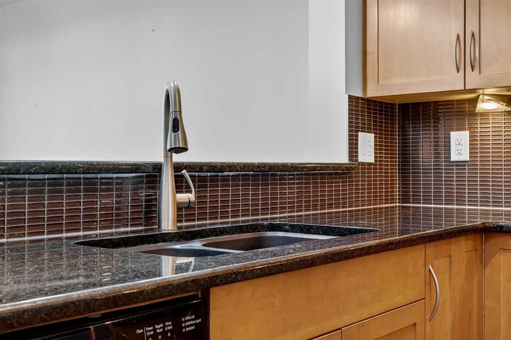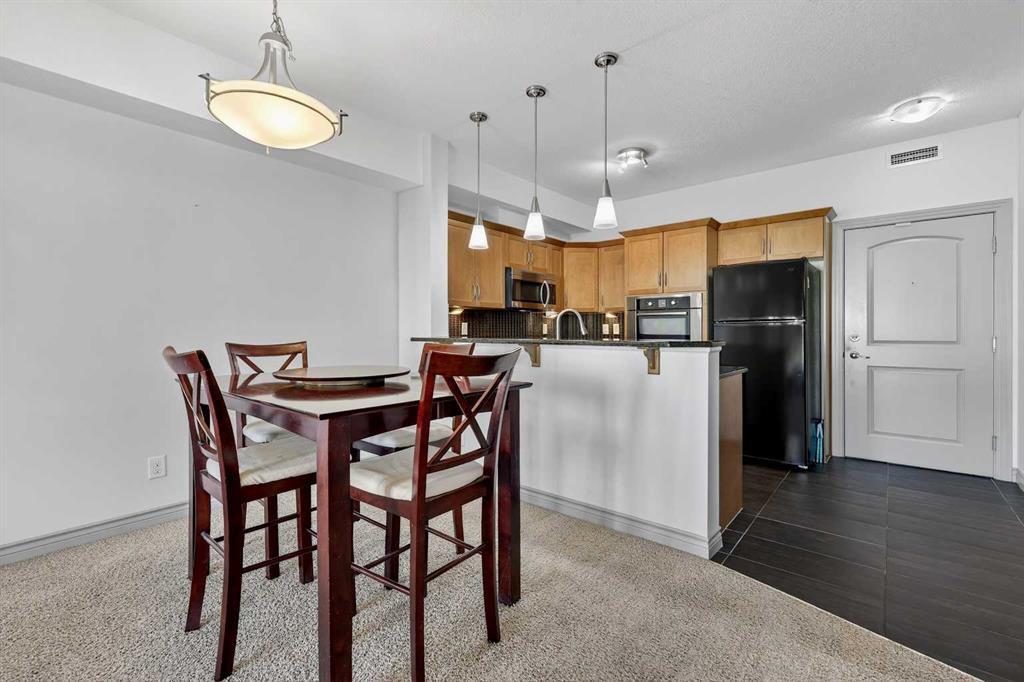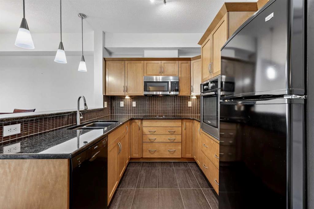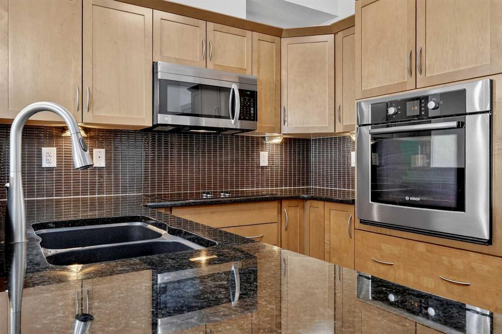 Welcome to this exceptional top-floor one-bedroom, one-bathroom residence in the highly sought-after Red Haus complex. Thoughtfully designed, this home features a modern kitchen complete with stainless steel appliances, granite countertops, and a raised breakfast bar—ideal for casual dining and entertaining. The open-concept layout offers a spacious living area and a bright dining space enhanced by upgraded tile flooring. Step outside to the large private balcony, equipped with a gas line for your BBQ, creating the perfect extension of your living space for relaxing or hosting guests. The generously sized primary bedroom includes a walk-through closet leading to a well-appointed four-piece bathroom. Additional conveniences include in-suite laundry with a full-size front-loading washer and dryer. This unit also comes with titled parking and a titled storage locker, adding both value and practicality. Ideally located within walking distance to shopping, restaurants, and public transit, this home offers outstanding everyday convenience. Residents of Red Haus enjoy exclusive access to the Residence Club, featuring a fully equipped fitness centre and an inviting entertainment area—perfect for an active and social lifestyle.