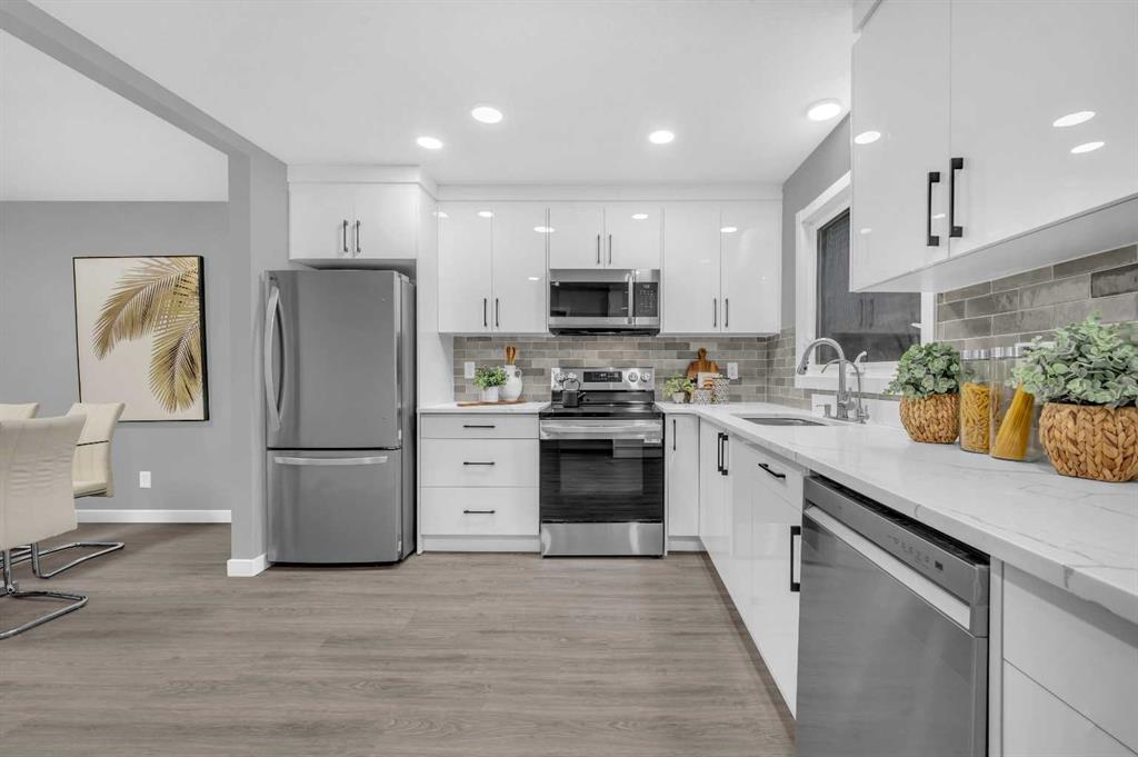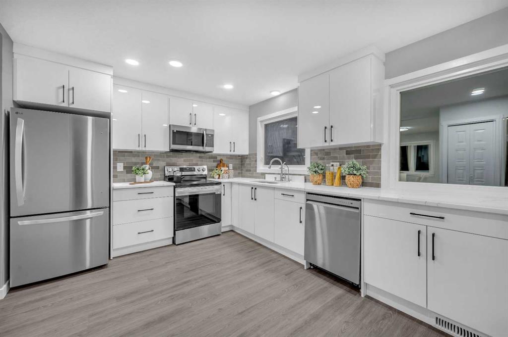 Fully Renovated 6-Bed, 4-Bath Single family home on an Over-Sized lot perfectly nestled in the highly sought-after community of Dalhousie NW. This inviting residence offers over 2,200 sq. ft. of thoughtfully designed living space, ideal for families looking for comfort, space, and style. Step inside to a generous front foyer that leads to a bright living room with brand-new full-size window filling the living room with ample sunlight. This fully developed bungalow has been beautifully renovated, showcasing stylish vinyl plank flooring throughout the house. The spacious kitchen features quartz countertops, white color cabinet, a striking backsplash, high-end stainless-steel appliances and seamless connection to the dining area. The main floor offers 3 bedrooms, 2 full bathrooms including a generous primary bedroom with a 4-pieceensuite. Convenient laundry area is also located on the main floor. Downstairs, the fully finished Illegal Basement Suite boasts a large living room, spacious 3 bedrooms, 2 bathrooms, full kitchen with brand-new stainless-steel appliances, cabinets and quartz countertops. It also includes a laundry along with a separate entrance which is great for potential rental income. Recent upgrades include brand new triple pane full size windows, vinyl plank flooring, new doors, new stainless-steel appliances, quartz counter tops, kitchen cabinets, lighting fixtures, washroom vanities and freshly painted. The oversized backyard is fully fenced features mature trees, sun exposure, and fire pit. This home truly has it all – location, style, and functionality. Enjoy proximity to top-rated schools, parks, shopping, and quick access to major routes, including Sarcee Trail, Crowchild Trail, and John Laurie Boulevard. Nearest elementary school - Dalhousie School, Nearest Junior high school - H.D. Cartwright School, Nearest high school - Sir Winston Churchill High School. Don’t miss your chance to see it today! Call your favorite realtor to book the viewing.