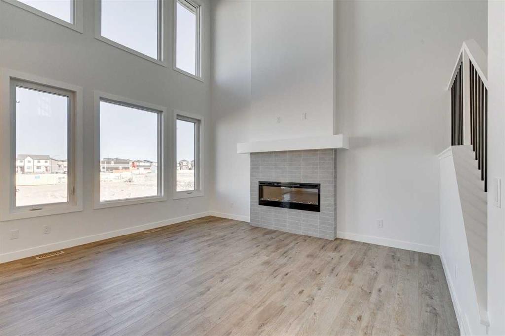 Featuring a full range of smart home technology, this home includes a programmable thermostat, ring camera doorbell, smart front door lock, smart and motion-activated switches—all seamlessly controlled via an Amazon Alexa touchscreen hub. Enjoy the convenience of a side entrance, main floor flex room, and walk-through pantry connecting to the executive kitchen with built-in stainless steel appliances, a gas cooktop and fridge with water and ice dispenser. The great room stuns with an open-to-below design and a striking electric fireplace with tile to mantle. Upstairs, the vaulted bonus room adds space and charm. Retreat to the luxurious 5-piece ensuite with a soaker tub and walk in shower with tiled walls. With quartz countertops in all baths, extra windows throughout, paint-grade railings with iron spindles, and gas line for BBQ, the Legacy is built for modern living.