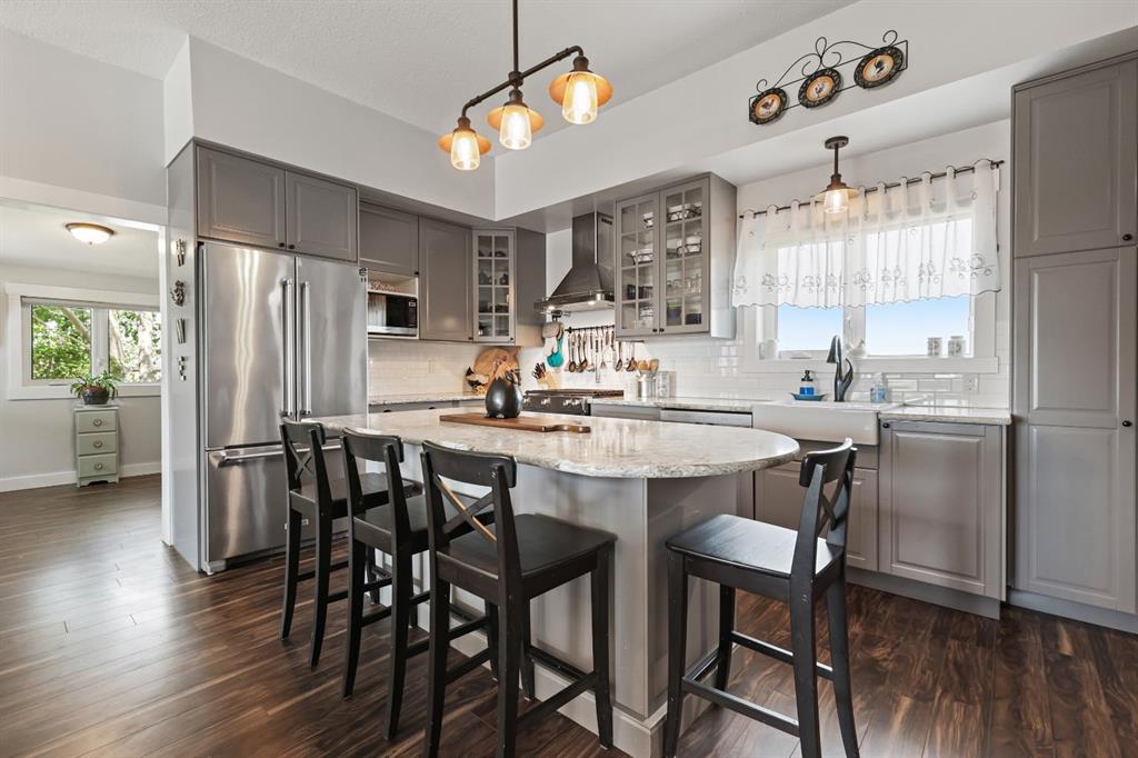 Welcome to your dream retreat—set on 4.05 fully fenced acres with stunning views and only 15 minutes from Calgary and Chestermere. This beautifully maintained bungalow offers just over 3,000 sq.ft. of developed living space, including a thoughtfully designed illegal in-law suite, making it ideal for multi-generational living or added rental potential.