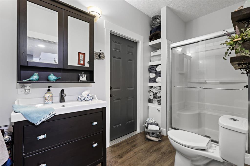 The main residence features a spacious primary bedroom filled with natural light from its south- and east-facing windows. The elegant ensuite includes a walk-in shower, soaker tub, and dual sinks, while the walk-in closet is equipped with built-in shelving and access to a massive 2,000 sq.ft. poured concrete crawl space—perfect for all your storage needs. Two additional bedrooms and a four-piece bathroom are located in the main wing. The open-concept living and dining room is centered around a stunning floor-to-ceiling, double-sided stone fireplace. With vaulted ceilings and a wood-burning insert with gas start, it adds warmth and charm to the space while creating a seamless flow between living and dining areas. The kitchen is bright and welcoming with plenty of cabinetry, a large walk-in pantry, Brazilian granite countertops, DuraCeramic tile flooring, and a breakfast bar. East-facing windows and patio doors lead to a cozy outdoor seating area—perfect for morning coffee, evening BBQs, or relaxed entertaining. Heading down the hallway to the in-law suite, you’ll pass a convenient three-piece bathroom and a den—perfect for a home office or quiet reading nook. The shared laundry room is both functional and stylish, offering a window for natural light, a utility sink, countertop for folding, and beautiful cabinetry for extra storage. The in-law suite was thoughtfully laid out with comfort in mind. The kitchen features a modern-country style with an apron sink overlooking a charming window, a gas stove for the home chef, and an island for additional prep space or casual dining. The open-concept living room is cozy and inviting, and a west-facing window captures breathtaking sunsets. The large bedroom offers a peaceful place to unwind at the end of the day, while the three-piece bathroom includes a walk-in shower, built-in shelving, and a mirrored cabinet for extra storage. Recent upgrades include new shingles and updated front siding, giving the home great curb appeal and long-term value. Outside, a 31'4 x 26'0 barn—including a separate storage room—offers versatile options for a workshop or animal shelter. A tranquil pond is fed by the adjacent canal, and the property is accented with mature deciduous trees and shrubs for added beauty and privacy. For evening enjoyment, gather around the cozy firepit area under the stars—perfect for roasting marshmallows and making lasting memories. This sought-after acreage combines space, privacy, and quick access to city amenities. Whether you're looking to escape the hustle of urban life or find a perfect place for your family to grow, this property is truly one of a kind.
