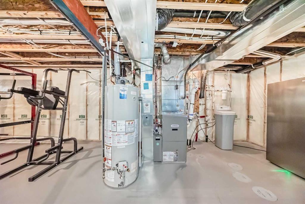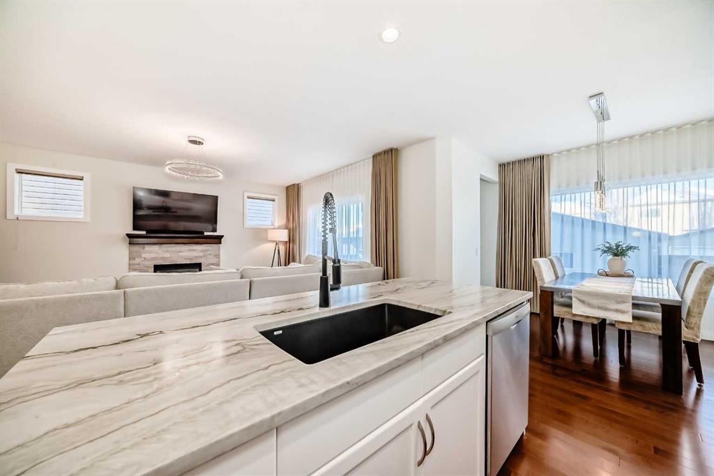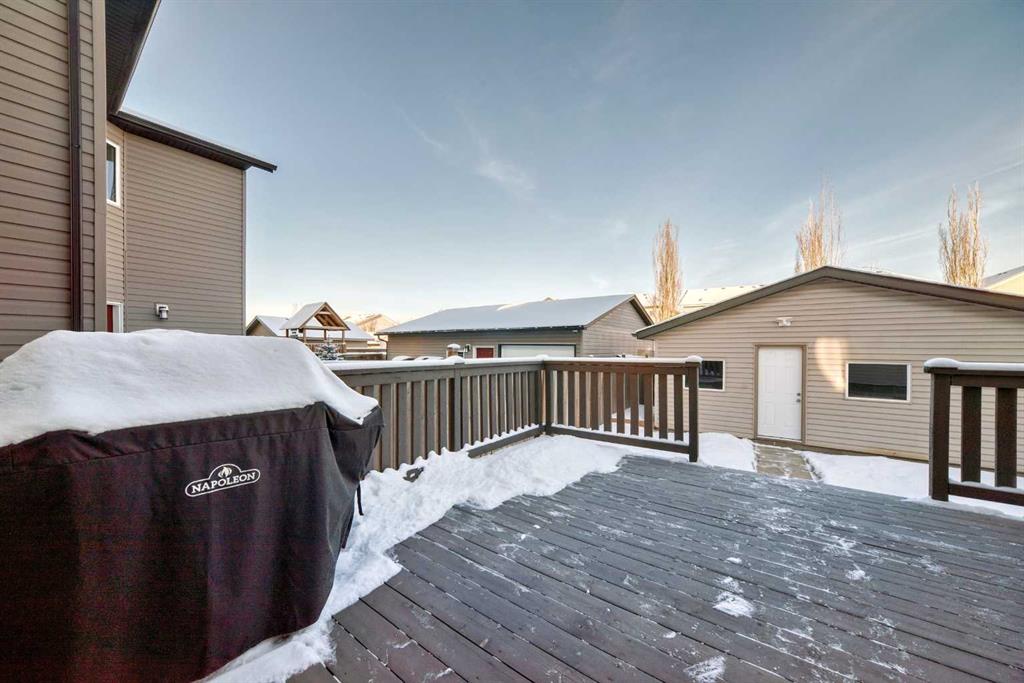 Welcome to 105 Elgin Meadows Circle, a Beautiful 3-bedroom, 2.5 bath home with over 2000-sq.f. of MOVE IN READY space, nicely landscaped lot, and a mountain of upgrades! Step inside the front door to the spacious open concept that is flooded with natural light. The large and bright flex room offers the perfect space for a family room or a sunny home office. Hardwood floors throughout the kitchen, dining and living room area showcasing the ideal layout for entertaining family and friends. The stylish updated kitchen (2023) comes with a custom Italian Quartz counter package, updated white cabinetry and backsplash, Corner pantry, new kitchen faucet and under-mount sink plus a quiet Bosh dishwasher (2023). The main floor ceiling has been upgraded to a knockdown finish and a Cartwright lighting package added throughout the home (2023). The living room features an oversized picture window and a retiled gas fireplace (2023). The dining space has large corner window and connects to the back mudroom with access to the private deck and fenced yard. A dedicated main floor laundry room and a separate 1/2 bathroom for convenience. New carpet /Underlay and fresh paint throughout the house (2025). New cedar front porch with natural stone wrap (2025). Furnace upgraded with a commercial grade Air filter and UV Light (2024). New High efficiency Hot Water Tank and Water Softener (2025) and for the hot summer days a new Lennox 4-ton Central Air Conditioner (2024). Upstairs you'll find three spacious bedrooms, full 4pc bath and a extra bonus room that can be used as a home office or TV flex room with a Juliet balcony. The large primary has an additional 4pc en-suite bath with a walk-in closet. Unfinished basement is awaiting your finishing touches; In the back you will find a double detached garage with an additional side trailer parking pad and gate, and a convenient BACK LANE. The back deck is ready for your BBQ hangouts or relaxing evenings in the backyard. Located in the highly sought -after Community of Mckenzie Towne, you have easy access to the splash park, winter skating rink, Playgrounds, Schools, and Transit. Mere steps away from the Environmental Reserve with walking/biking paths and ponds. Plus, you're just minutes from High Street with many Shops, grocery stores, Restaurants and all amenities. With tons fantastic features and new upgrades this home is truly MOVE IN READY with unbeatable location. Come take a look!!!