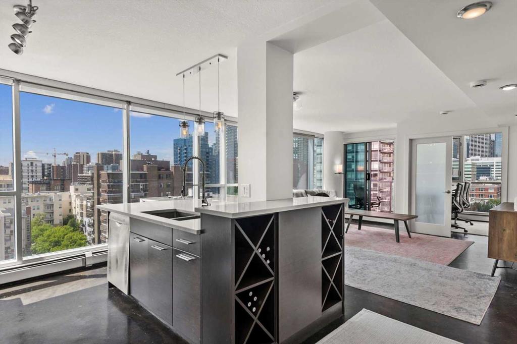 Interior:breakfast bar, high ceilings, kitchen island, no animal home, no smoking home, open floorplan, quartz counters