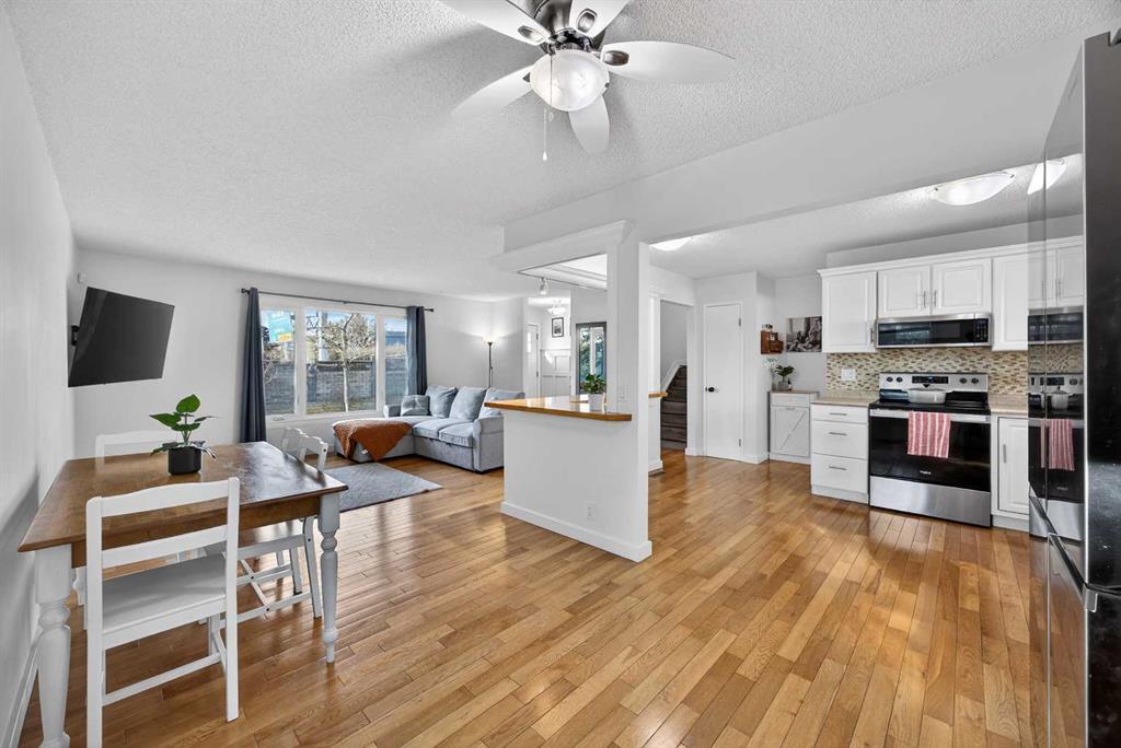 This is the one you have been waiting for with 6 bedrooms, great for larger/generational families or potential rental options! Very updated and fully finished 4-level split on a large corner lot, steps away from park/playground. Oversized 25ft x 23.5'ft double detached garage, with full parking pad beside and tons of street parking! As you enter the front door you are greeted by the gleaming hardwood floors guiding you through the open concept layout with large newer windows flooding the property with natural light. Large kitchen with crisp white cabinetry, tile mosaic backsplash, newer SS appliances, coffee bar, and large center island with eat up bar. Open to the dining room and spacious living room with large picture window. Head upstairs to the master bedroom with cheater door to fully renovated 4-piece bath with tile flooring and tub surround. Good sized 2nd and 3rd bedrooms complete the family friendly upper level. Head downstairs, past the separate back entrance, to the lower level with another 3 bedrooms! Fully finished basement features a large family room with kitchenette, a full 4-piece bathroom, laundry/utility room and lots of storage space. Lots of notable upgrades such as newer windows throughout, newer furnace (2013), hot water tank (2025), and new central A/C (2023) for the hot summer evenings. All this located in the desirable NW neighborhood of Ranchlands close to schools, parks, ravine trails, Crowfoot Shopping Center and C-train station. Commuting is a breeze with quick access to Crowchild and Stoney Trail and straight out to the mountains!