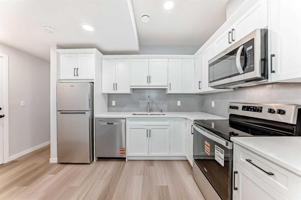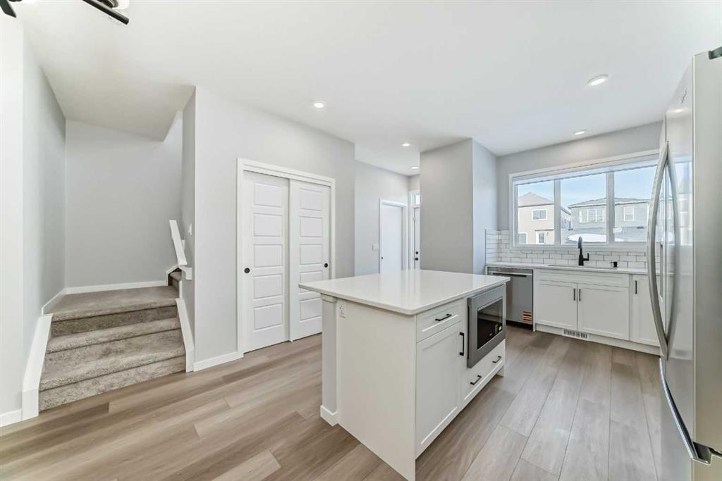 Kitchen & Appliances: The heart of the home is a chef's kitchen, perfectly appointed for culinary creations and social gatherings. It features gleaming quartz countertops, a large center island with ample seating space, and a suite of modern, sleek stainless steel appliances that combine style and function. An adjacent pantry provides additional kitchen storage.