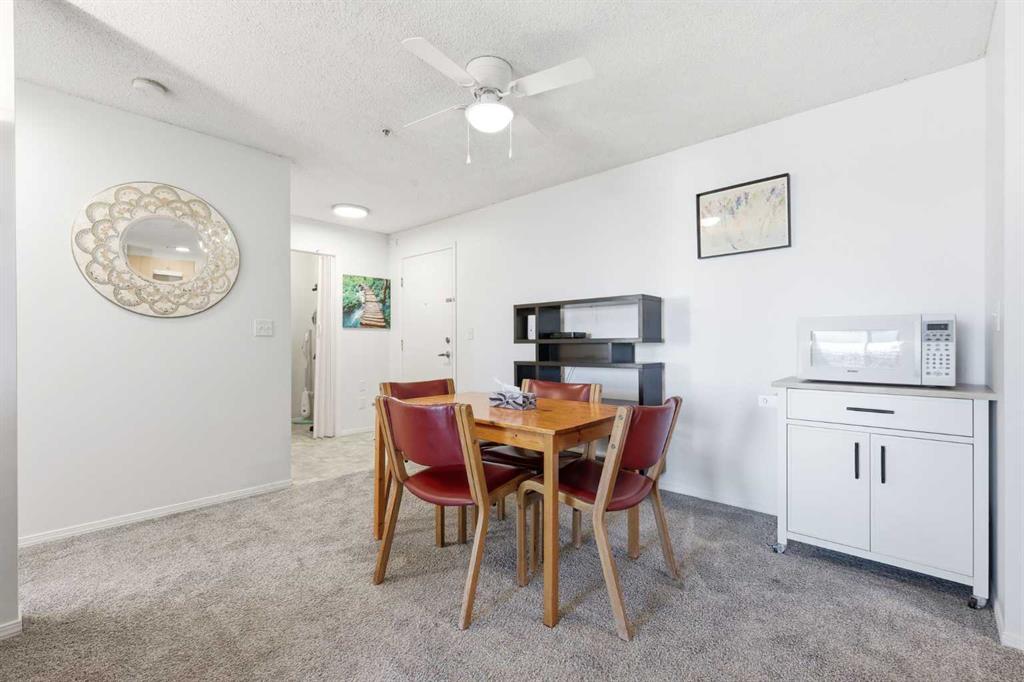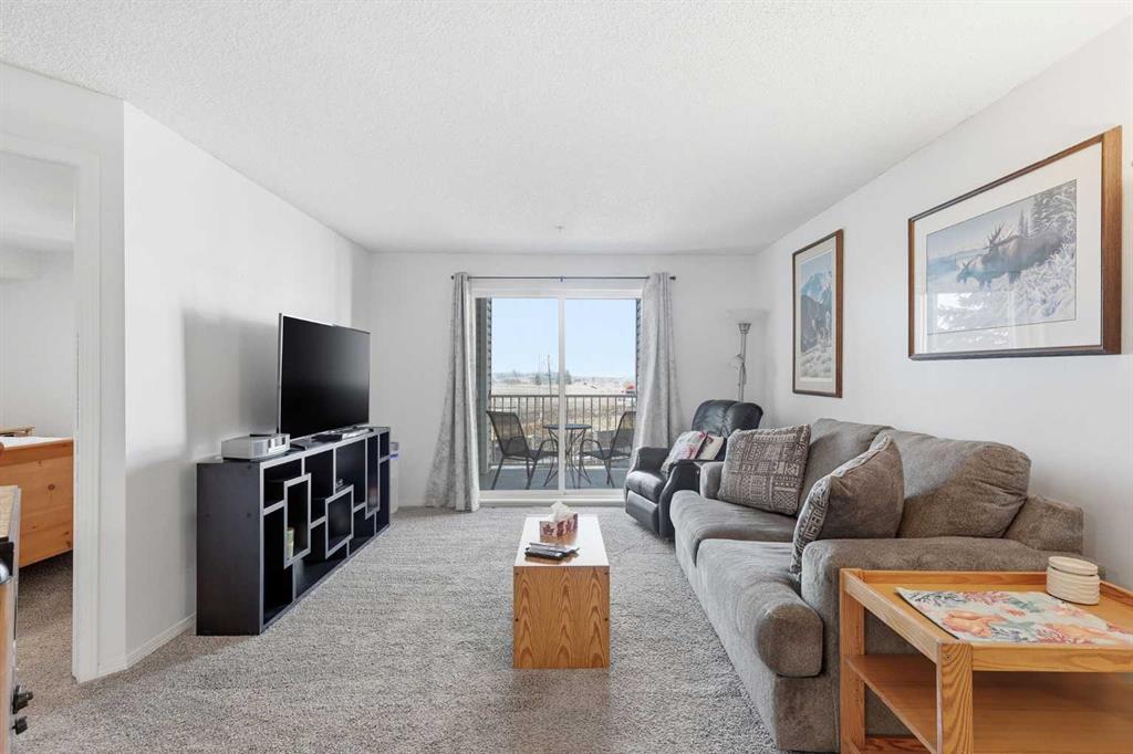 The kitchen connects seamlessly to the main living and dining area, offering generous cabinetry and practical prep space — perfect for cooking, hosting, or simply enjoying a quiet night in. Just beyond, sliding doors lead to your private balcony — the true standout of this home. From here, unobstructed mountain views stretch across the horizon, providing a daily backdrop that’s rarely found at this price point.