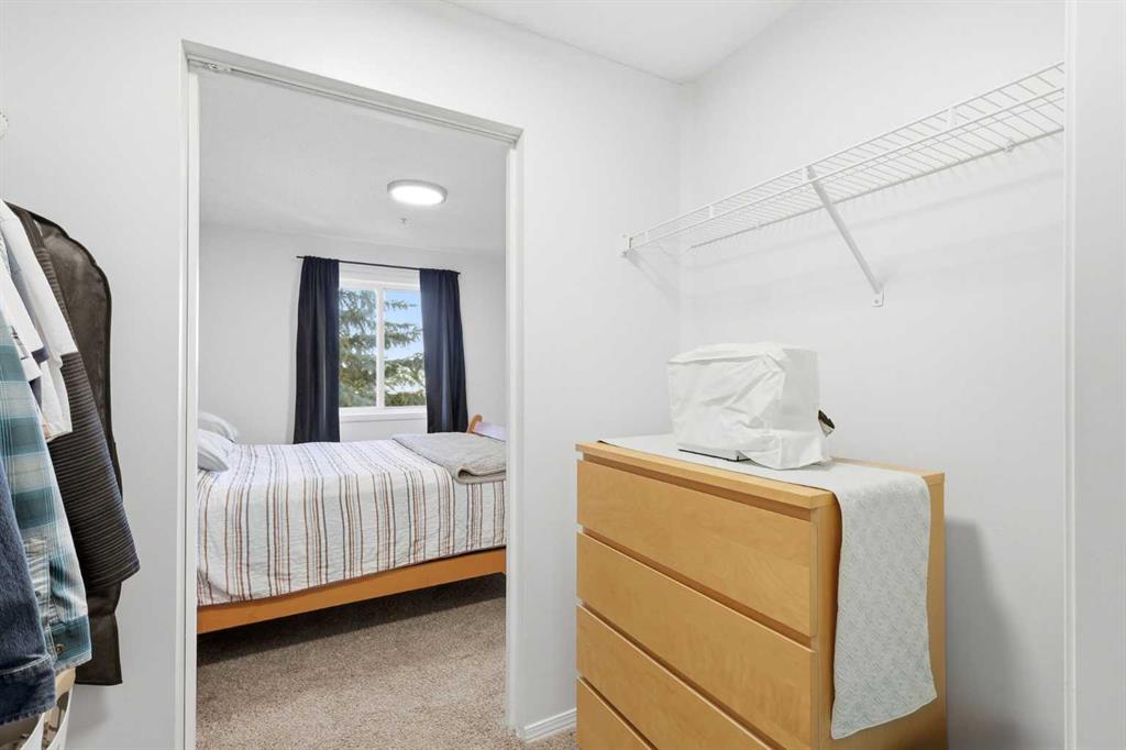 The layout is thoughtfully designed, with the bedrooms positioned on opposite sides for added privacy. The primary bedroom feels like its own retreat, complete with a walk-through closet and private ensuite. The second bedroom is bright and versatile — ideal for guests, a roommate, or a comfortable home office. In-suite laundry and additional storage are tucked away separately for everyday convenience.