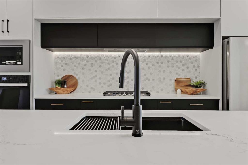 The lower level continues the home’s clean, intentional design and feels every bit as considered as the main living spaces. This 2-bed legal lower suite is a turnkey opportunity for a mortgage helper or multigenerational living. A full kitchen opens to a dedicated living area, creating a natural flow that works well for extended family, guests, or flexible day-to-day use. Two well-sized bedrooms, a full bathroom, and separate laundry round out the space, with practical storage integrated where it matters. The result is a lower level that feels finished, functional, and easy to live in, rather than an afterthought.