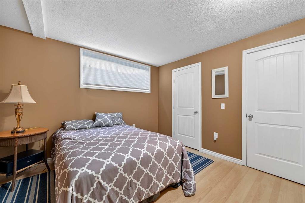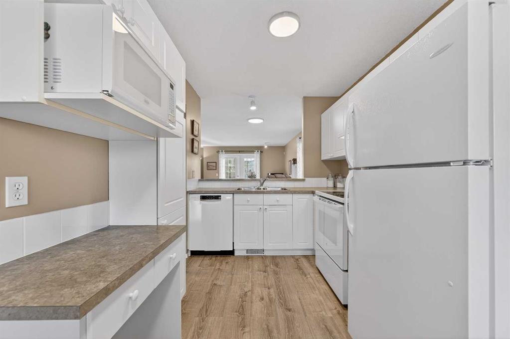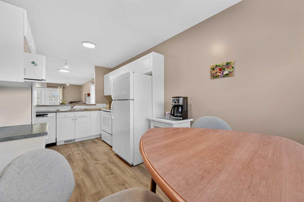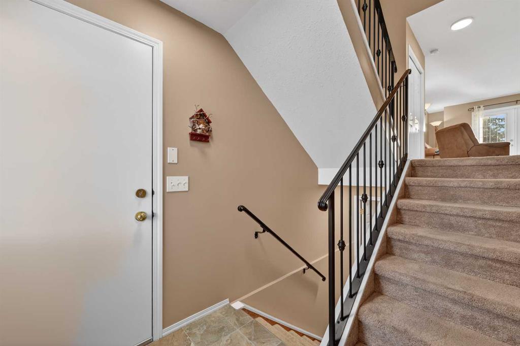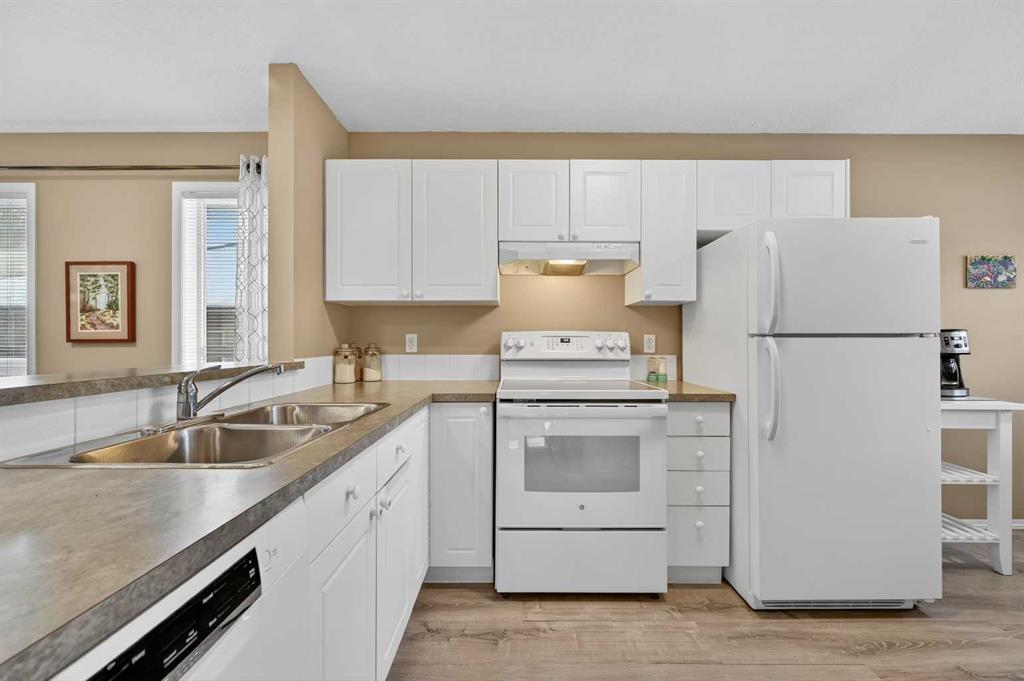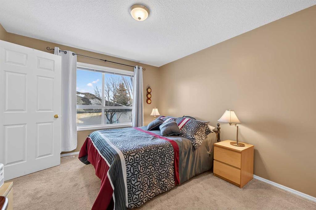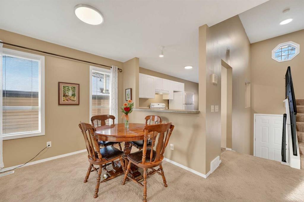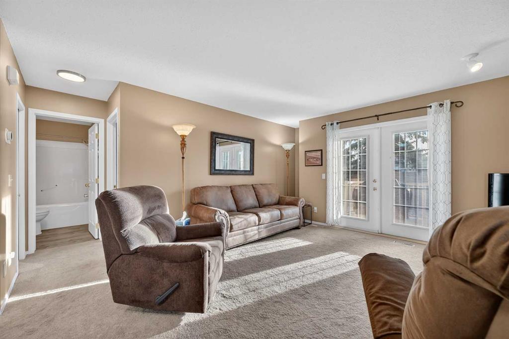 Welcome to West Pointe Villas, Airdrie’s sought-after adult living community, where pride of original ownership is evident throughout this beautifully maintained home. Thoughtfully designed with comfort and functionality in mind, the main level features an open-concept kitchen overlooking the living room, creating a bright and airy atmosphere. A generously sized dining area sits adjacent to a large window, offering an inviting space for everyday meals or entertaining. French doors from the living room lead to a sunny south-facing deck, overlooking a peaceful, fully fenced backyard—perfect for relaxing or enjoying outdoor time. A spacious bedroom on the main level can serve as a primary or guest room and is conveniently located next to a full four-piece bathroom. The upper level is dedicated entirely to a private primary retreat, featuring a large walk-in closet and a full four-piece ensuite, providing a quiet and comfortable escape. The lower level includes an additional bedroom, a welcoming family room, aundry area, and a large storage room, offering excellent versatility and extra living space. There is a rough in for a 3rd bathroom in the basement. Completing the home is a beautifully landscaped backyard and a single attached garage, making this property an exceptional opportunity for low-maintenance living in a well-established community.