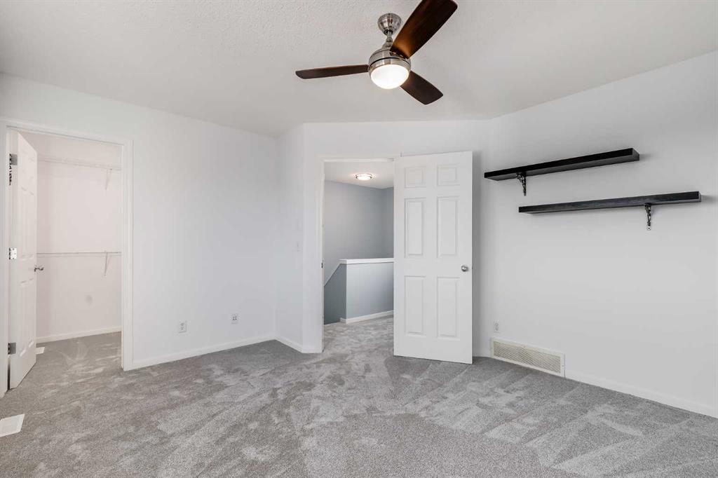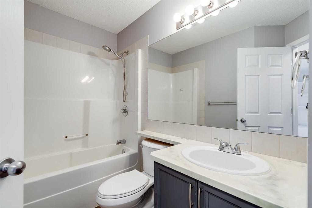 Well-maintained home with no condo fees, ideal for a first-time buyer or growing family. Pride of ownership shown throughout this well cared for residence . Features new carpets throughout and a recently developed basement with a full bathroom, Murphy bed, and a couch that converts into a bed, perfect for guests or flexible living space. Upstairs offers three bedrooms and a bright, functional layout. The main floor includes a comfortable living room, along with a nicely sized kitchen and dining area. The kitchen features epoxy counters and grey-blue lower cabinets with white uppers for a clean, modern look . Enjoy the private backyard with a deck, gazebo, and hot tub. After a relaxing time in the backyard coming back to air conditioning completes your perfect summer days. Rear parking pad offers space to build a garage. Fantastic location with a park across the street, elementary, junior and high school nearby. Easy access to grocery stores, CrossIron Mills mall as well as Stoney trail and Deerfoot trail. Book your showing today!