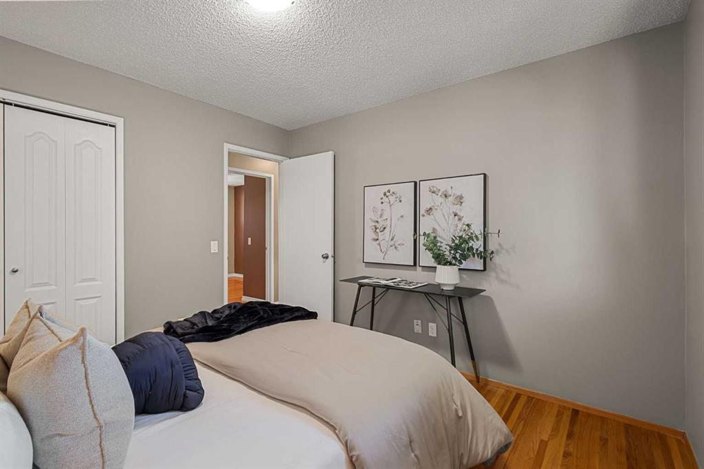 The fully developed basement features a large family room with a play or office area and nice windows. A gas fireplace is set into a striking brick feature wall with ample display space for family photos. Two additional bedrooms—one generously sized—a full bathroom with a window, under-the-stairs storage, and a laundry room complete the lower level.